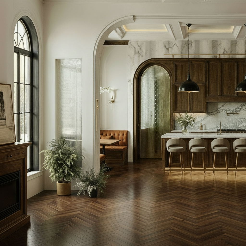exterior shot can you replace the marble on the wall inside the nook with a marble in a reeded fluted pattern