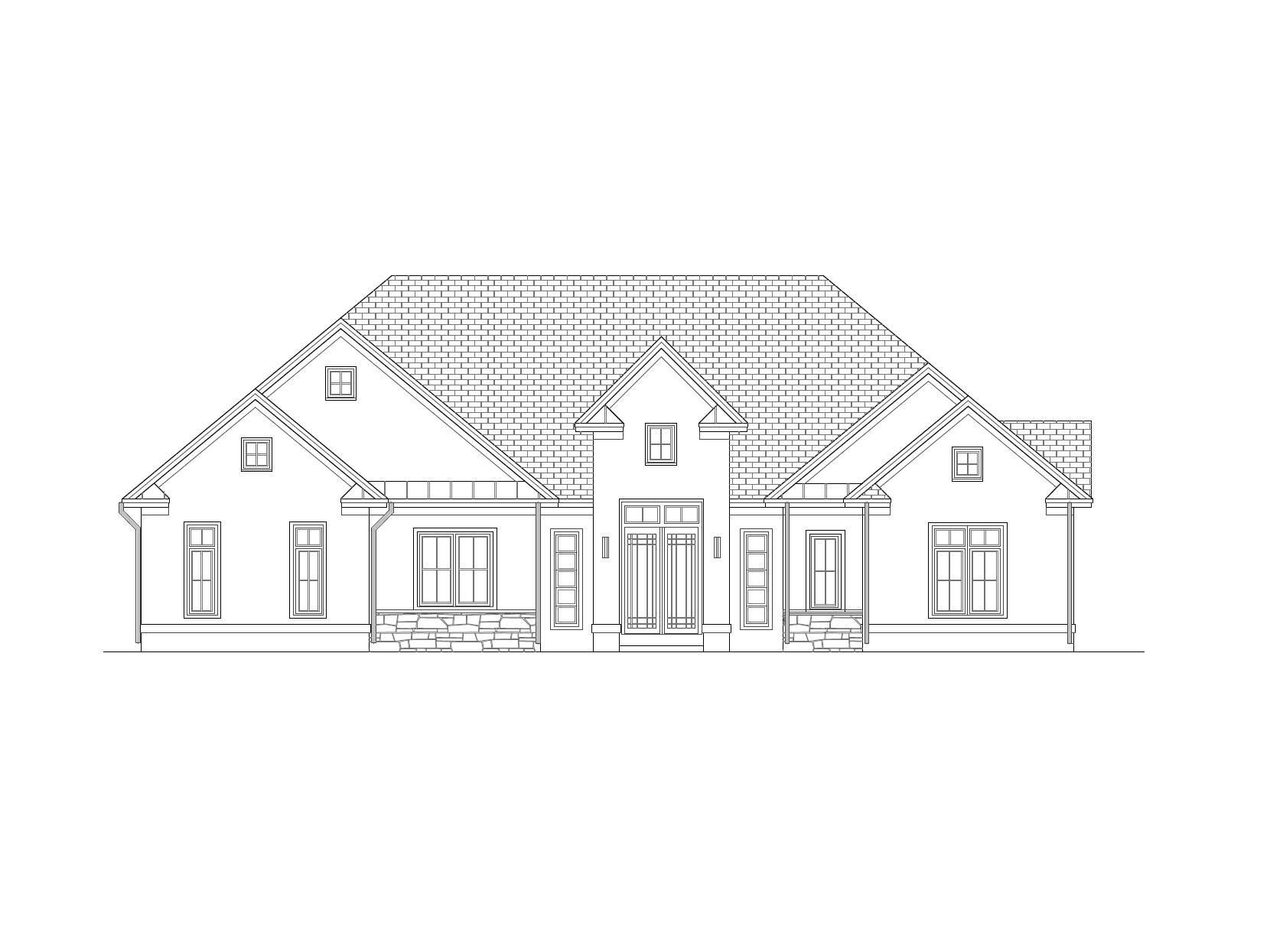 florida style house stucco with a touch of stone show stucco as light pale white and the stone a pale sandy color driveway is in the center for courtyard entry show landscaping