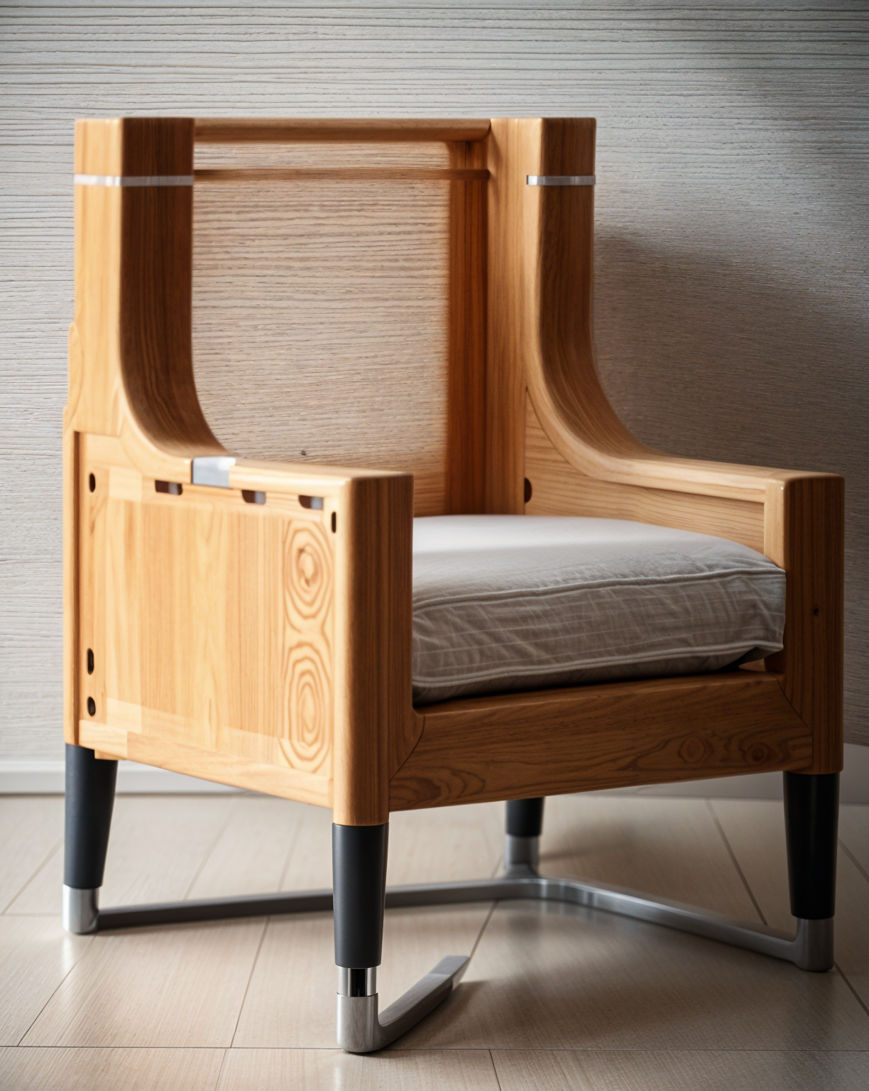 modernist perspective shot weaving inspired back chair wooden legs finish upholstered seat and back architecture