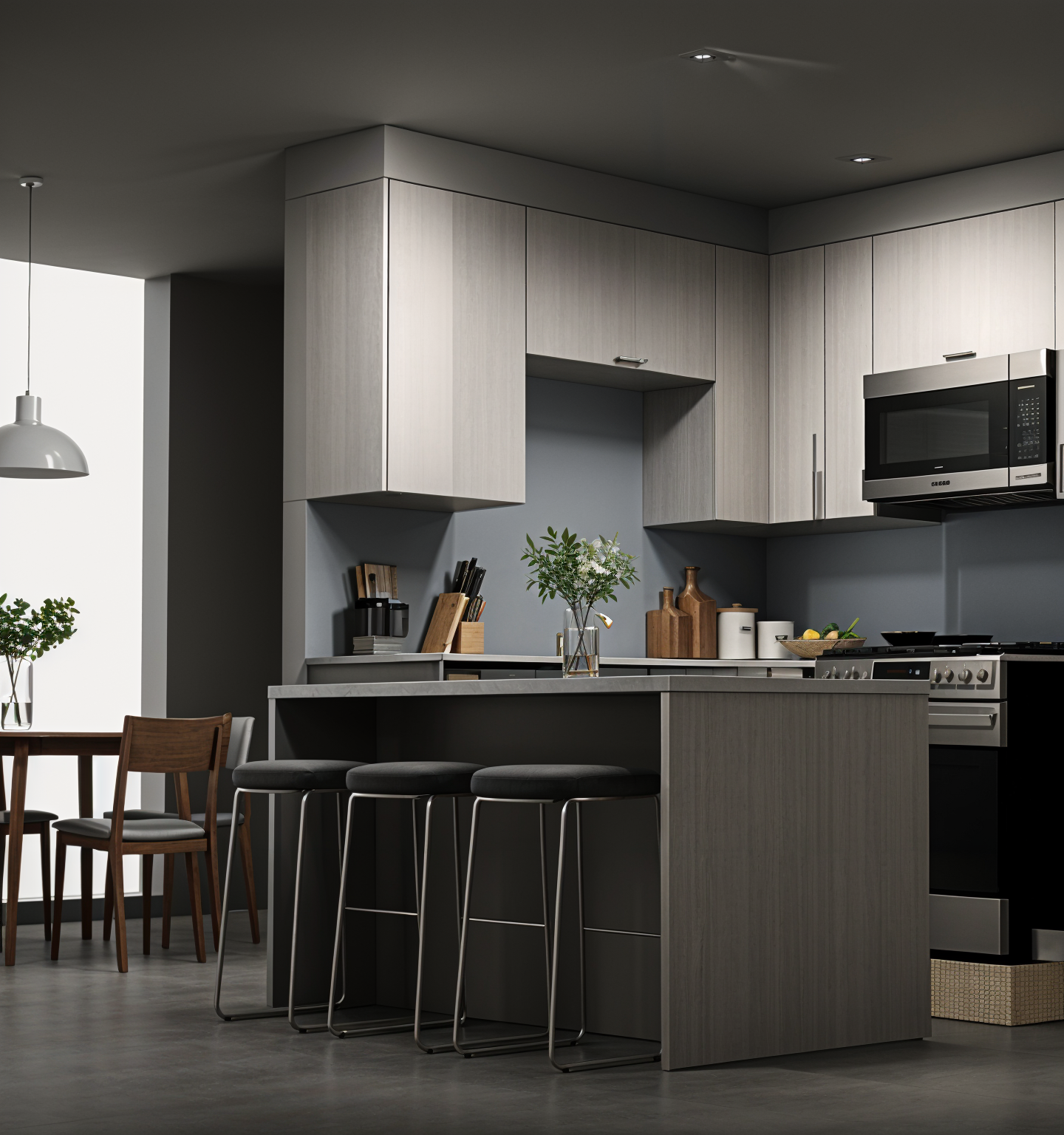 a modern architectural building with an open courtyard featuring sleek white and gray facade lines in metal with soft gloss the central area includes a lush green tree adding vibrancy and life to the space children play beneath a red pergola while adults engage in conversation nearby creating a sense of community the atmosphere is welcoming and lively bathed in soft natural afternoon light that inspires tranquility and connection