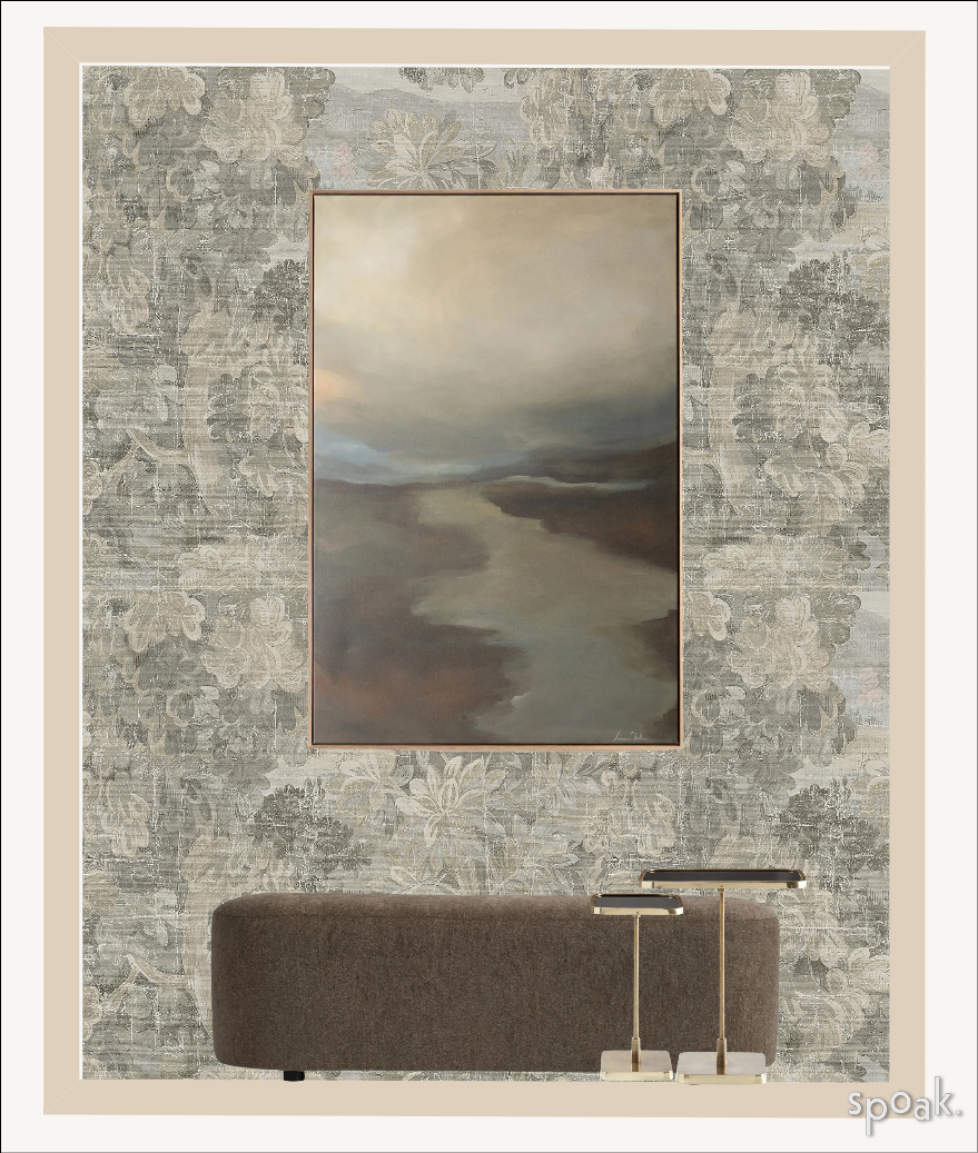 can you make sure to capture the wallpaper detail and turn this elevation into a rendering the floors are ivory tile