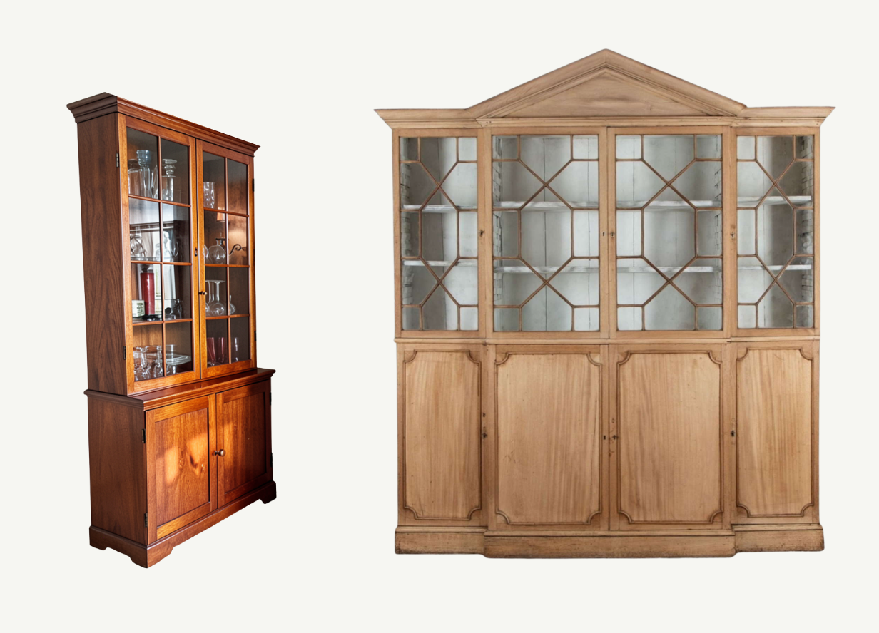 change out the wood grain of the cabinet of the left for the wood of the cabinet on the right