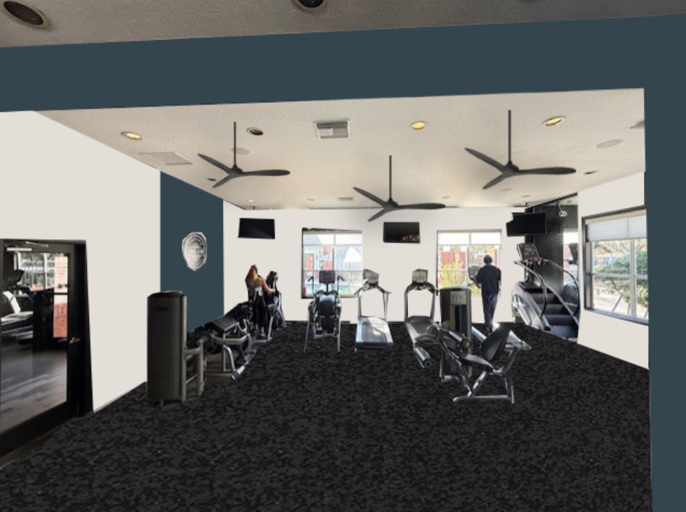 render this gym as is the blue paint is gale force sw 7605 and the walls are sw 7028 incredible white