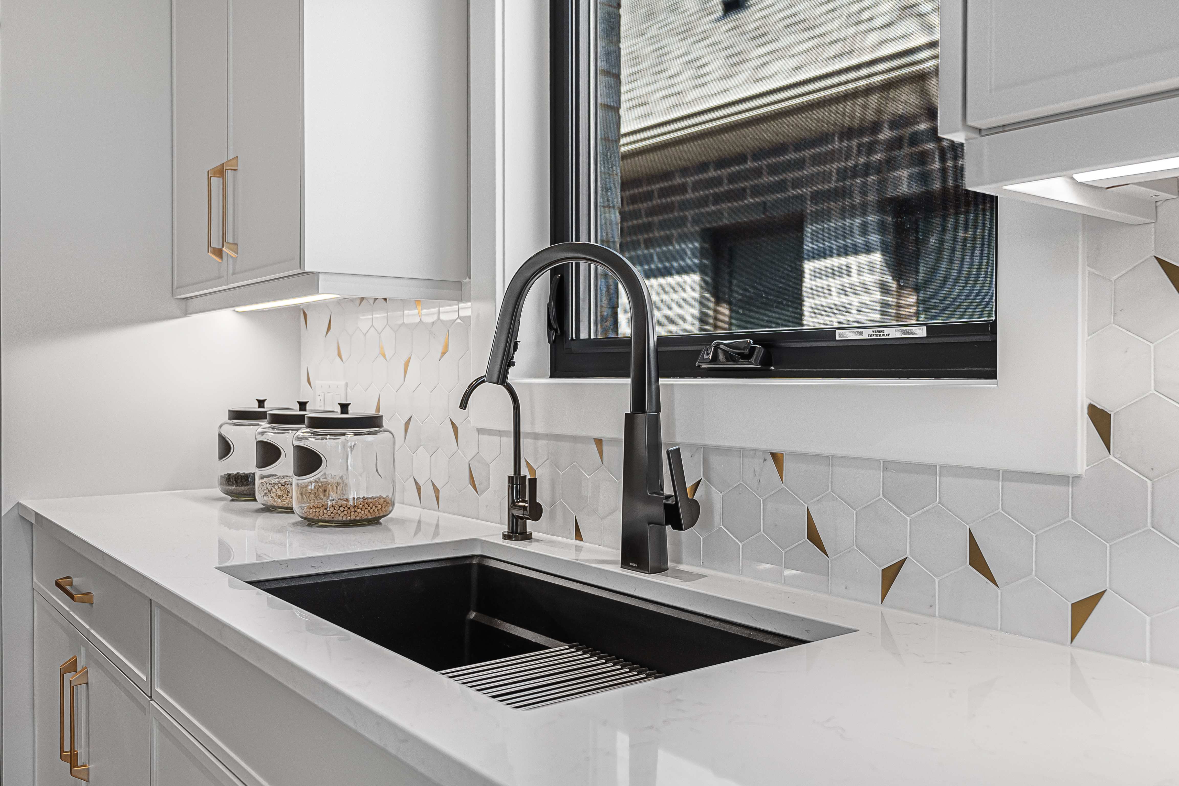 retain the structural elements of the home add green grass landscape through the windows blue sky