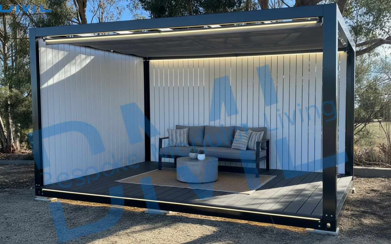 add a double sided glass fireplace to back of dining table in the room it is a radiante 846 2v double sided firebox place it on a 2000mm x 2000mm 250 high concrete plinth with a 100 x 100 recess on the base provide an enclosure from the top of the firebox to the ceiling in dark steel colour remove air conditioning equipment