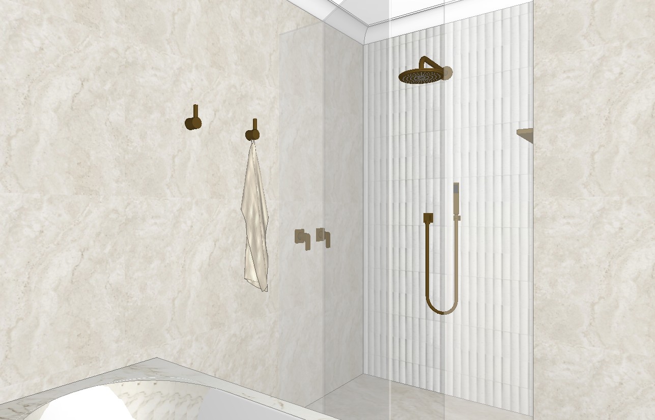 add natural light into the space add bathroom decor and add a person hanging their towel on the towel hook