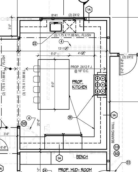 make this kitchen floor plan into 3d follow plan and where appliances are