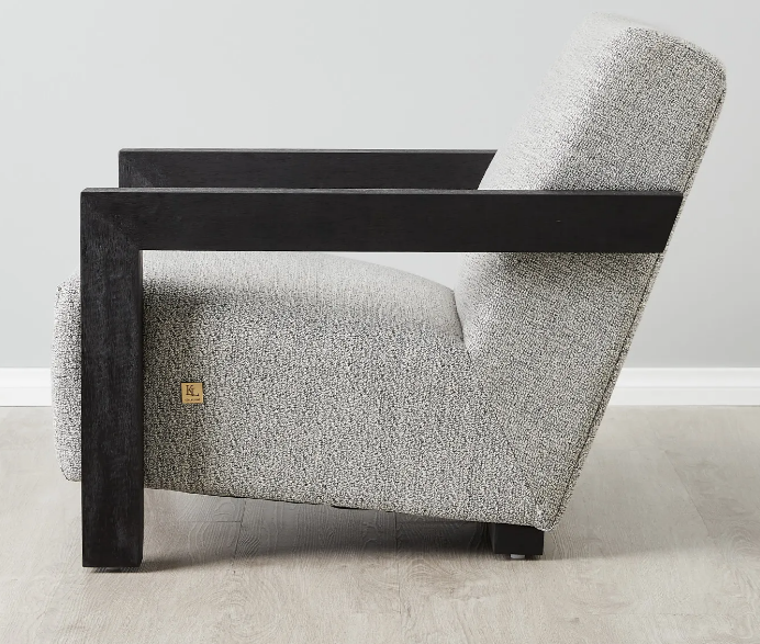 accent gray and cream white raffia weaving legs and armrest upholstered white seat and back