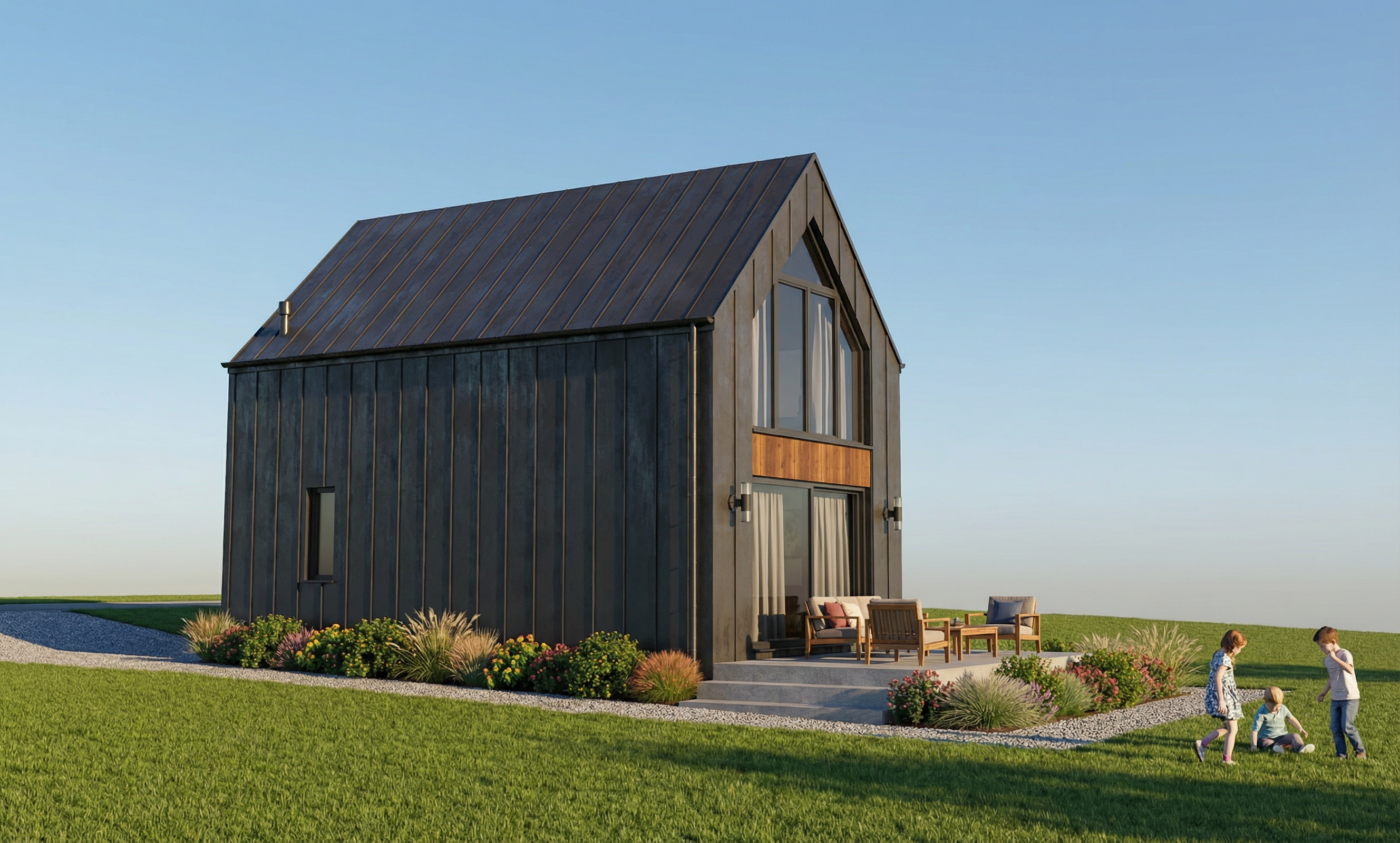 a light beige color the aluminium in pergola and windows should be green grey