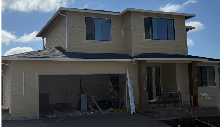 white body dark grey panel above bands black window trim