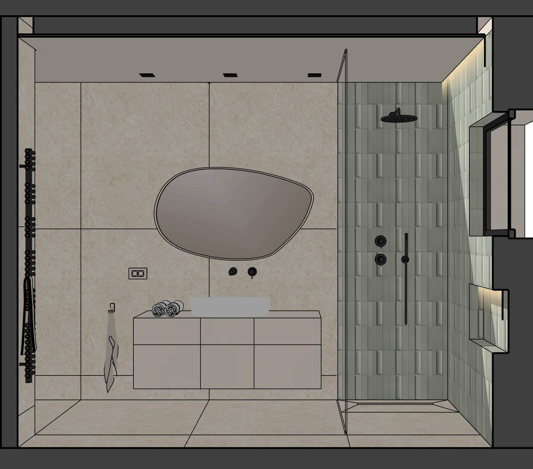 use hidden light and ceiling spots for lighting