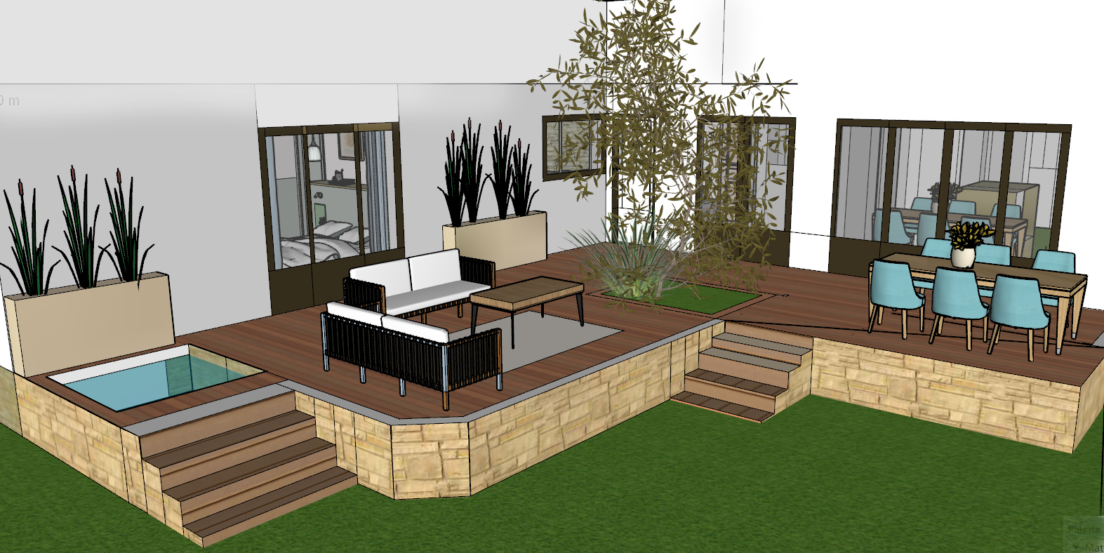 pelouse terasse en parement pierre et sol bois jacuzzi a gauche ambiance t olivier d coratif