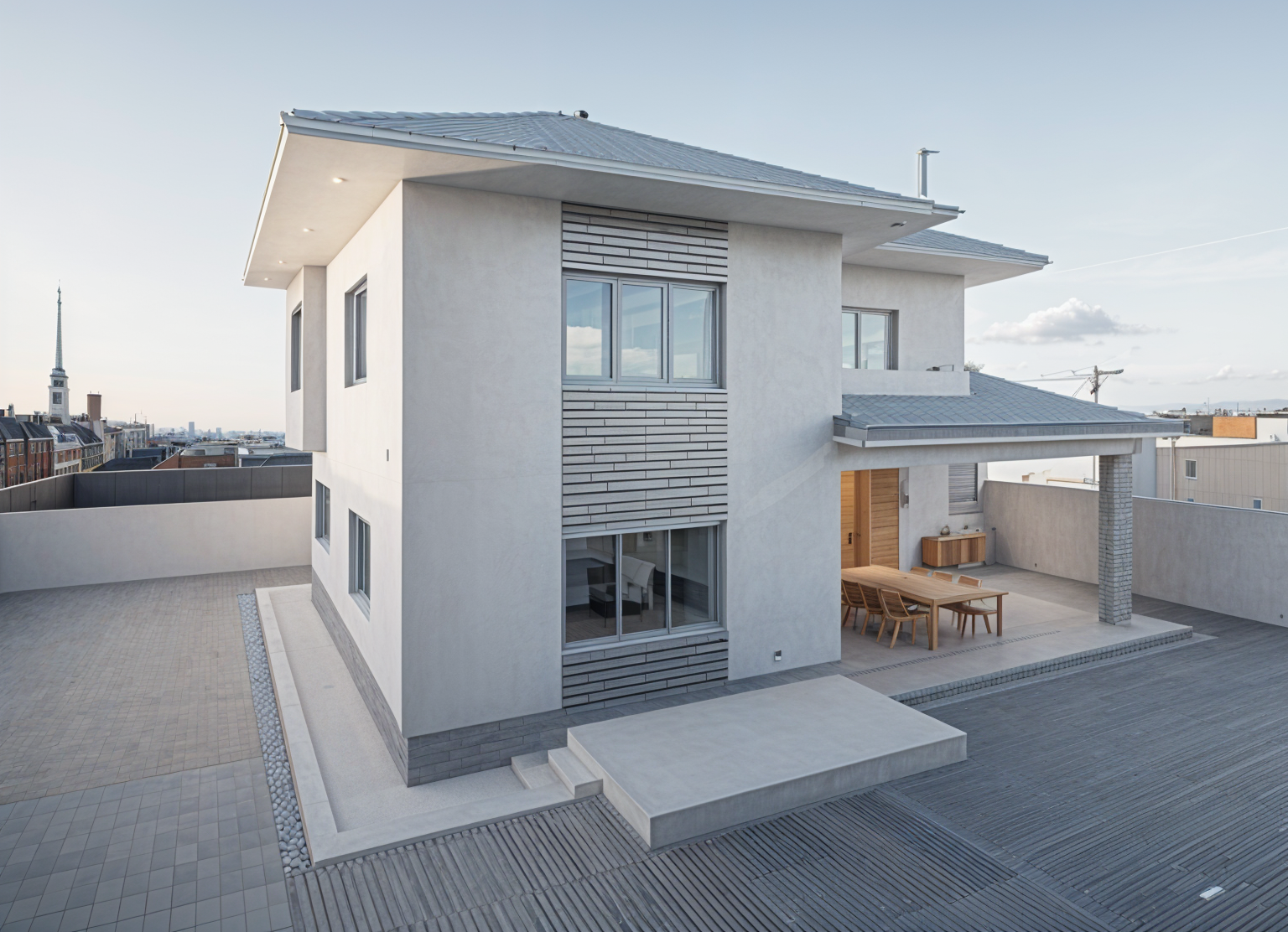 exterior shot add grass trees and bushes a cat and a dog architecture