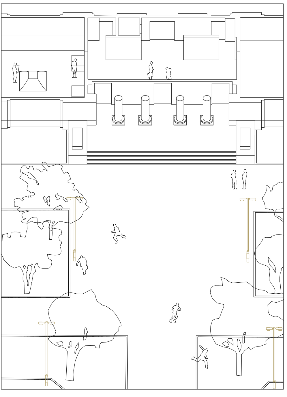 renaissance night shot do it like a comic about a robbery in a museum note that the museum has been cut at a certeain height at the exterior is a park more precisely parc de la ciutadella in barcelona and the museum is museum martorell please do not change the geometry of the image architecture
