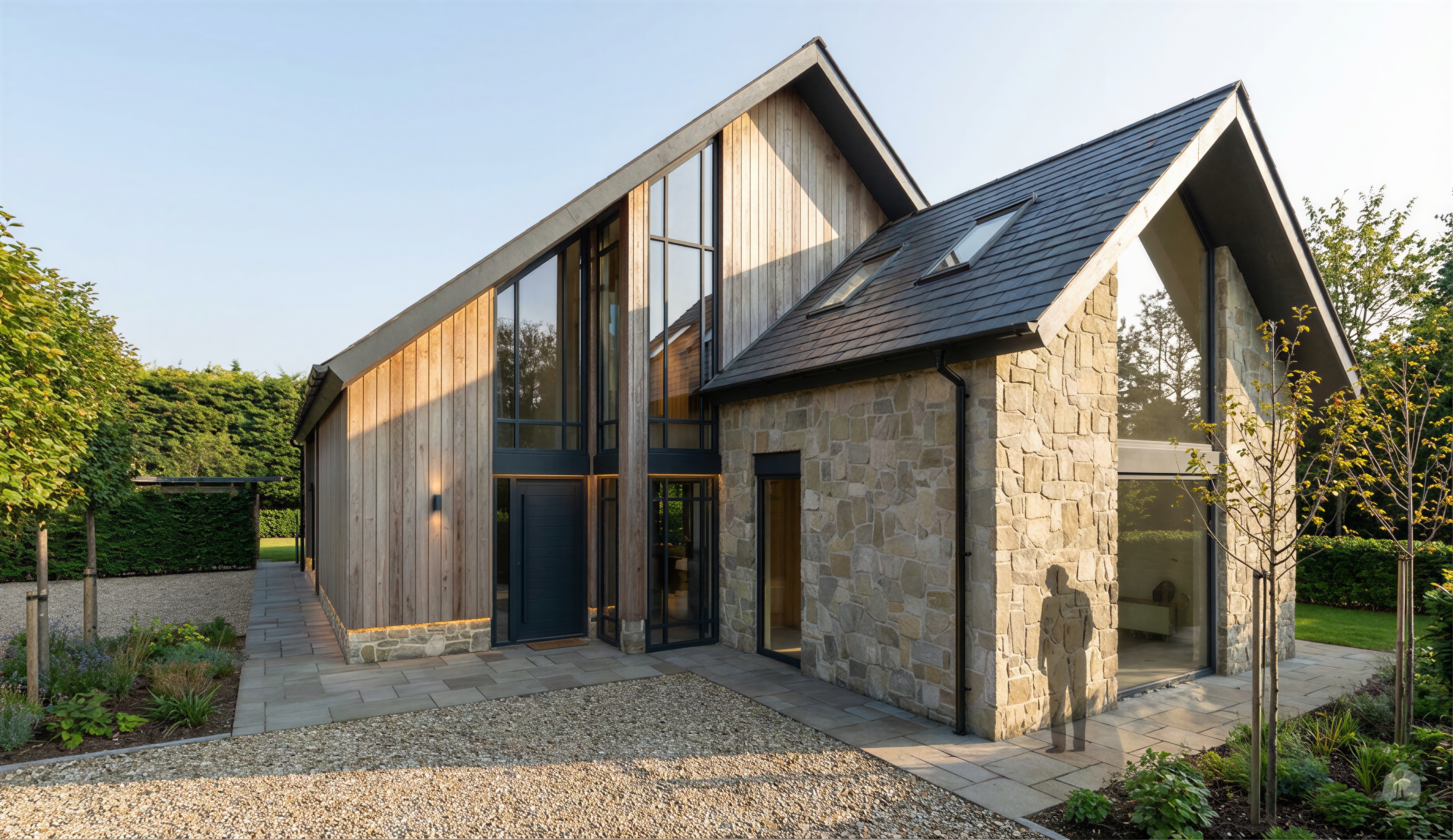 the splash guard must be warm dark grey concrete en all around the whole house