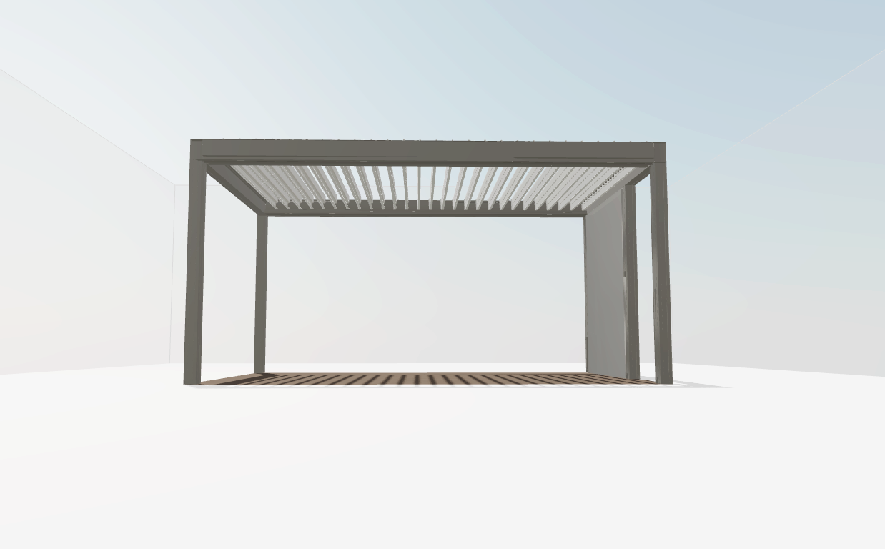 modernist exterior shot please add wooden terrace under the pergola fixed back wall and furniture pergola is located in front of the modern house with the amazing garden architecture sun is shining and 2 people sitting architecture