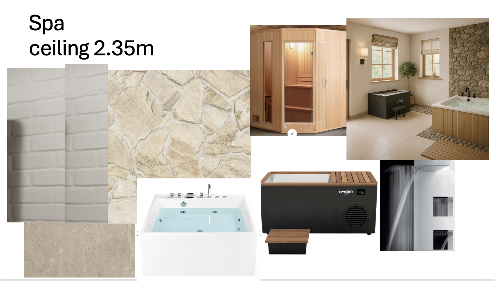 make a spa the room is 27m2 sqared in a basement there are also 2 windows placed at the same wall hot tub should be placed in one of the corners with the stone wall and sauna should be placed in another corner feel free to compliment the room with wooden framings surrounding the hot tub ceiling height is 2 35m and the sauna is 2m
