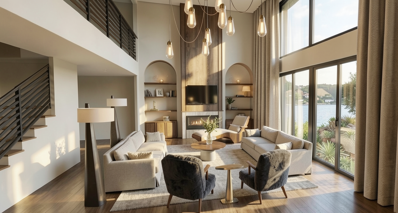 his is a rendering from sketchup i d just like it to feel slightly more realistic in lighting and material depth please don t change any of the design elements or content i still want it to clearly read as a rendering just with a bit more realism and refinement make it bright at welcoming
