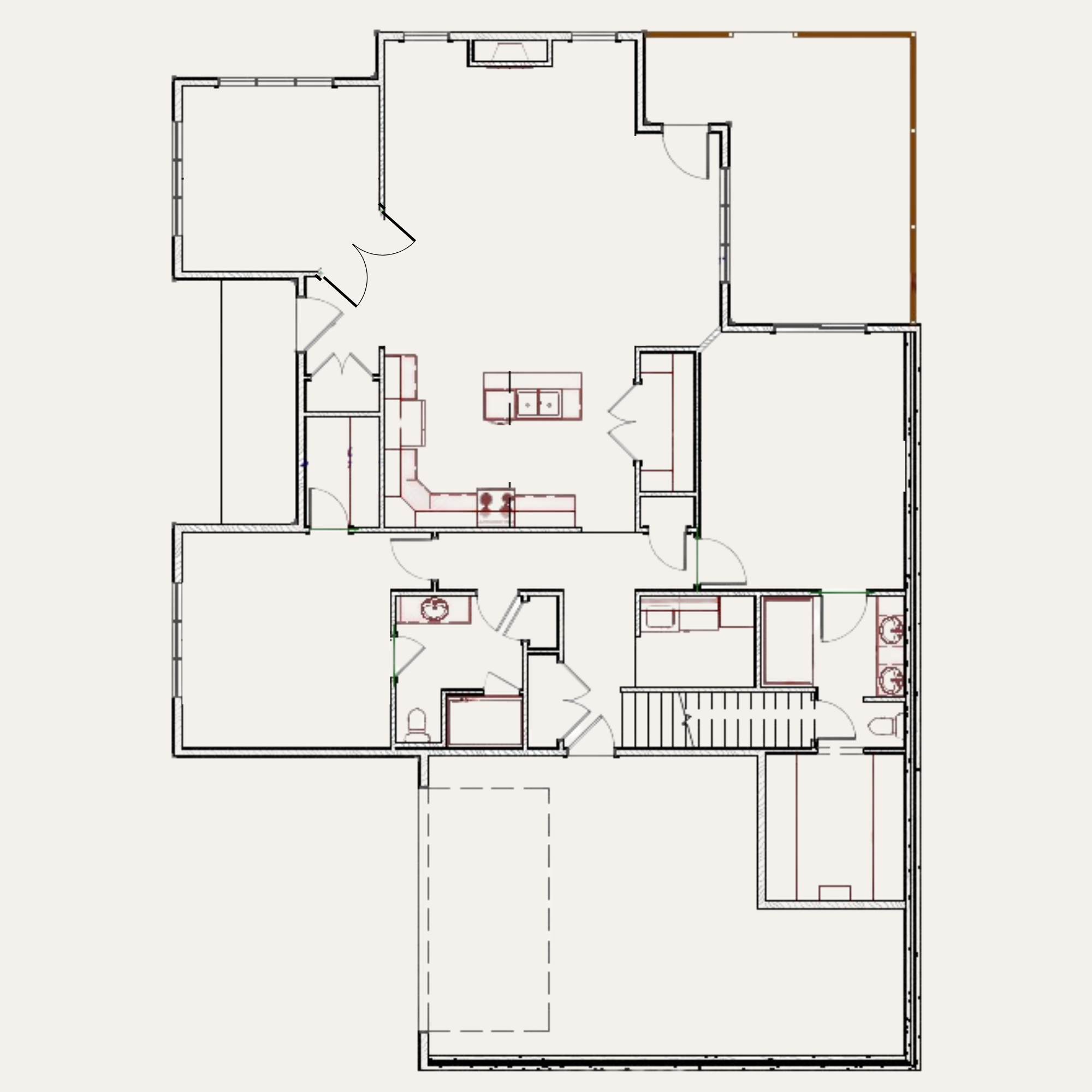 do not add any furniture or flooring keep this as a architectural blueprint very simple and clean do not change any of the floor plan or make any additions change the red lines to a dark navy blue change the black lines to a dark navy blue keep the same background color