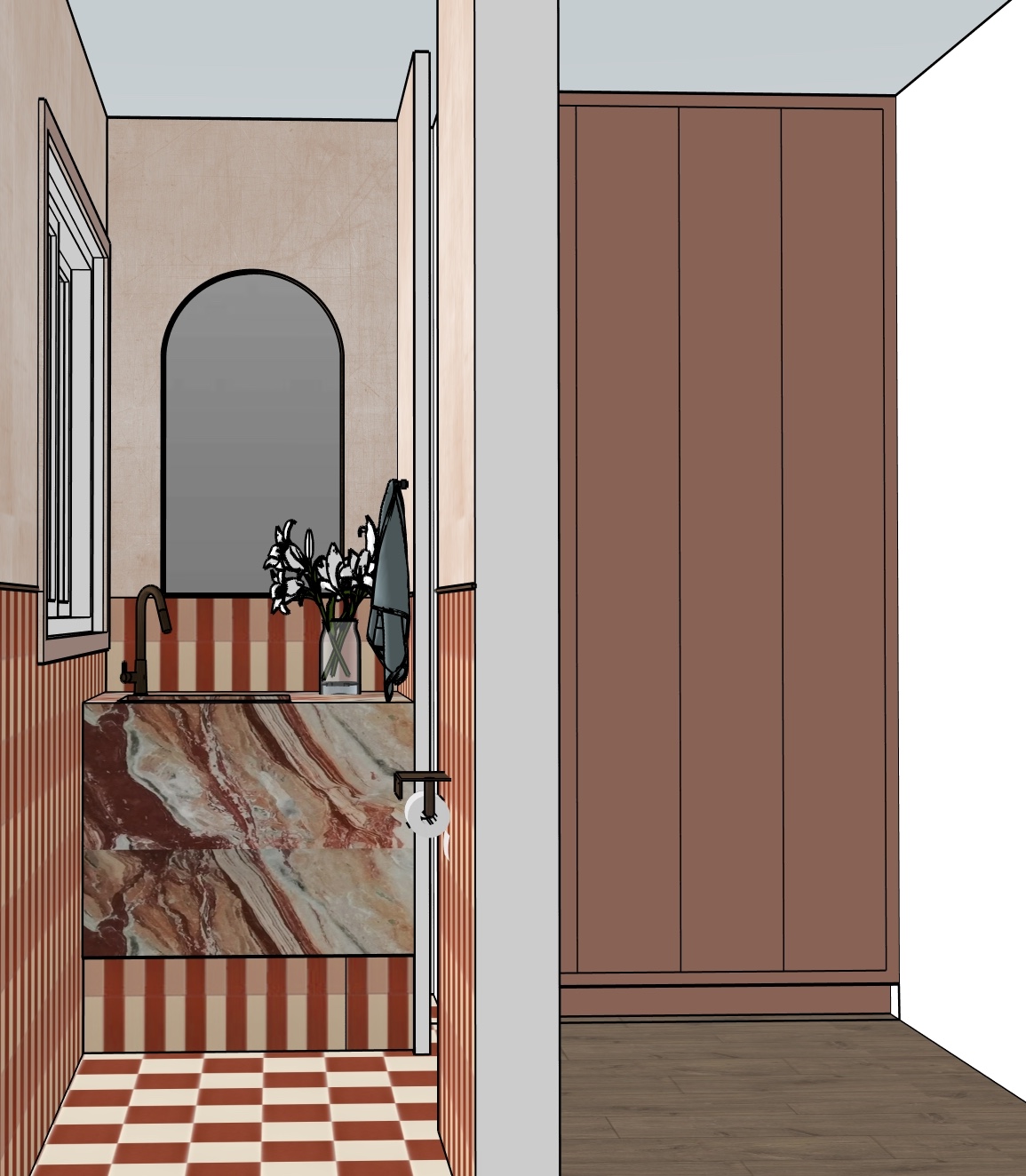 maintain all colours of this image upper wall paint colour should be olive sage green cabinet on the right of image should be farrow and ball colour naperon
