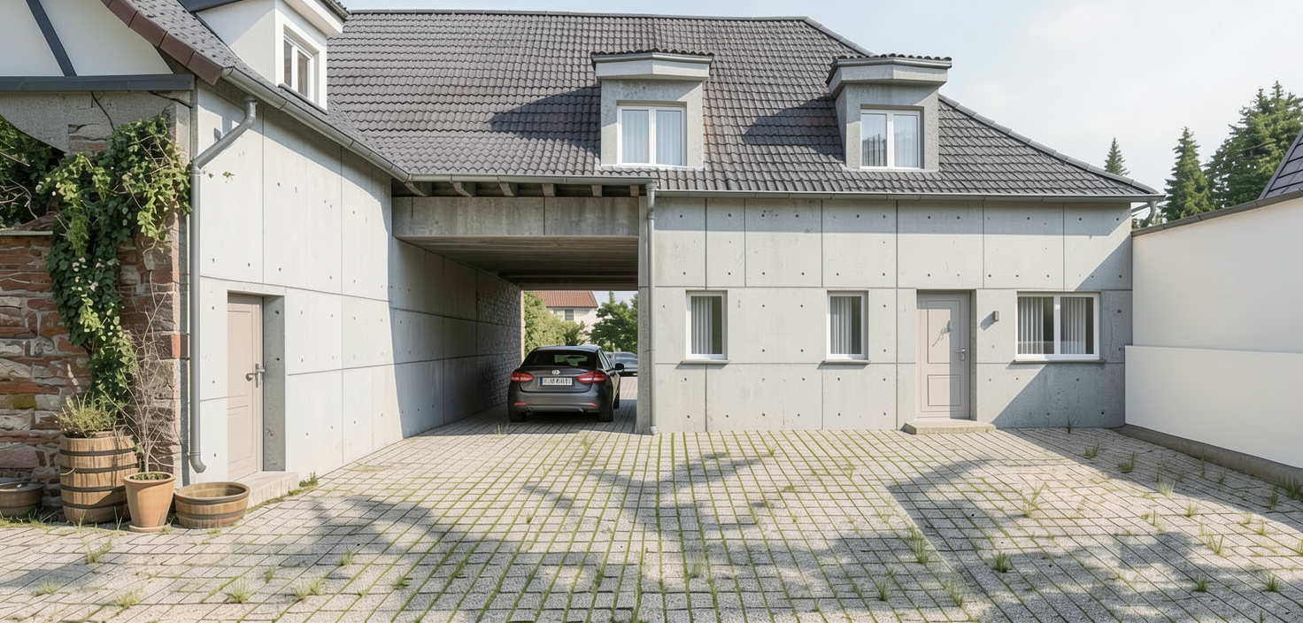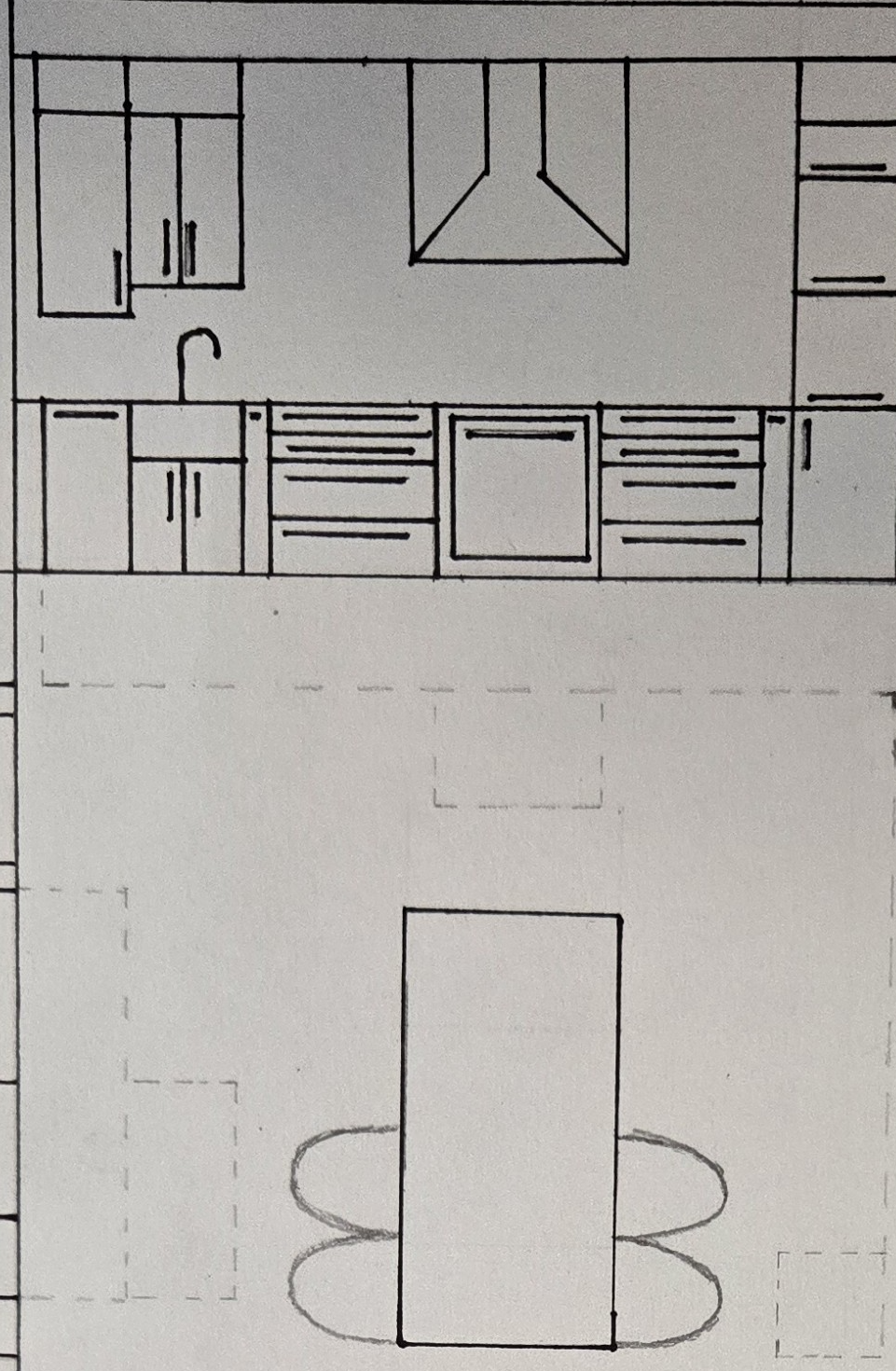 the picture is a kitchen elevation of only one wall in a u shaped kitchen with an island on the wall facing the island is a food prep sink induction oven with range and appliance garage generate a realistic 3d rendering with a modern organic design counter tops should be a beige quartz with some brown veining and floors a white oak engineered hardwood the cabinets should be a medium brown wood color