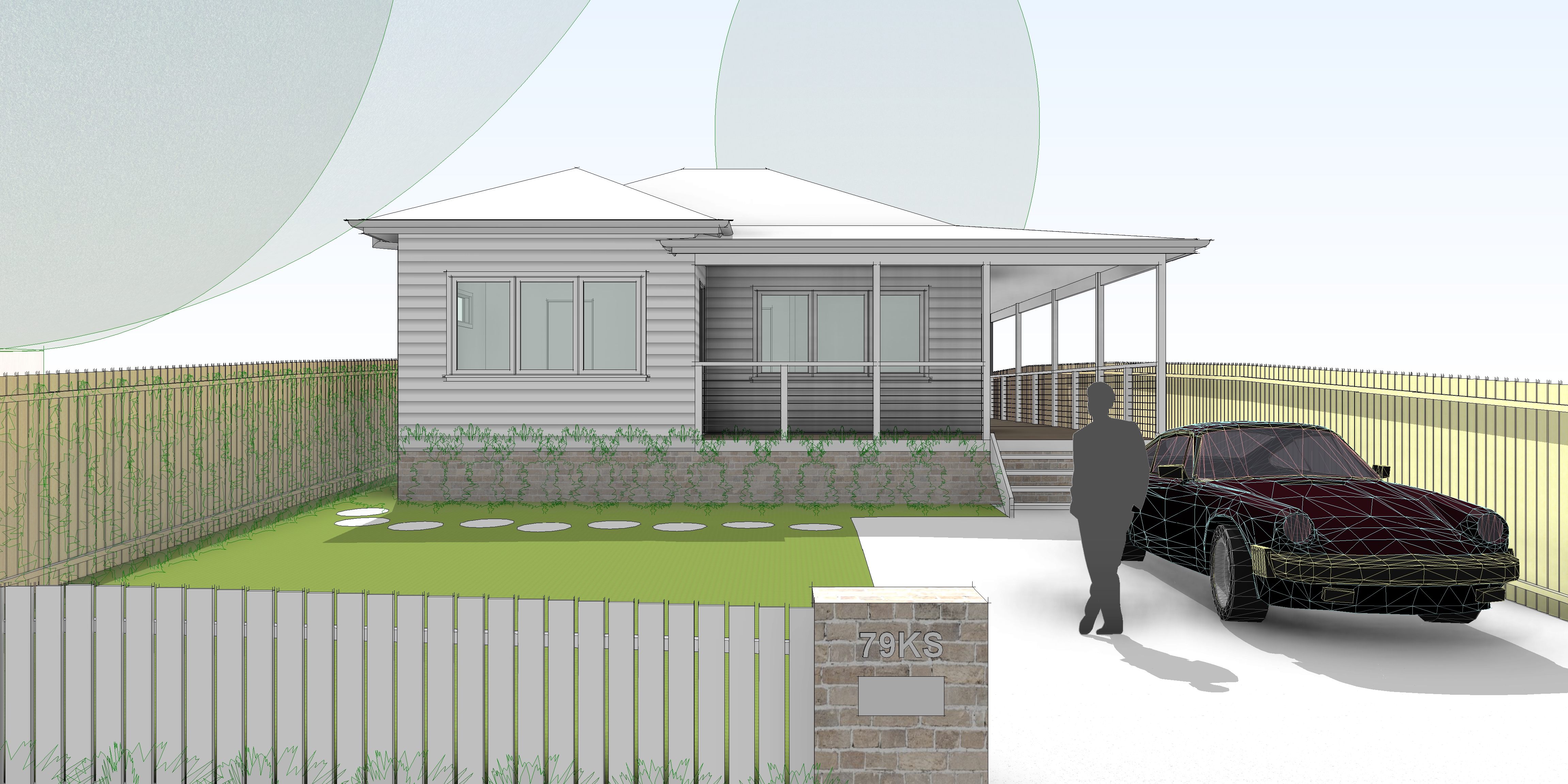 render a photorealistic 3d perspective of this house in sydney reference the current material style just enhance them white customorb metal roof linea fc siding and recycled brick letterbox keep model geometry the same windows doors roof walls garage door pavement driveway make a lush vegetation that looks native to australia do not change the view only enhance the current materials and make the landscape nicer vegetation detailed textures in the grass and glass reflections and a vibrant clear sky with light atmospheric depth render in hyper realistic architectural visualization quality 8k resolution