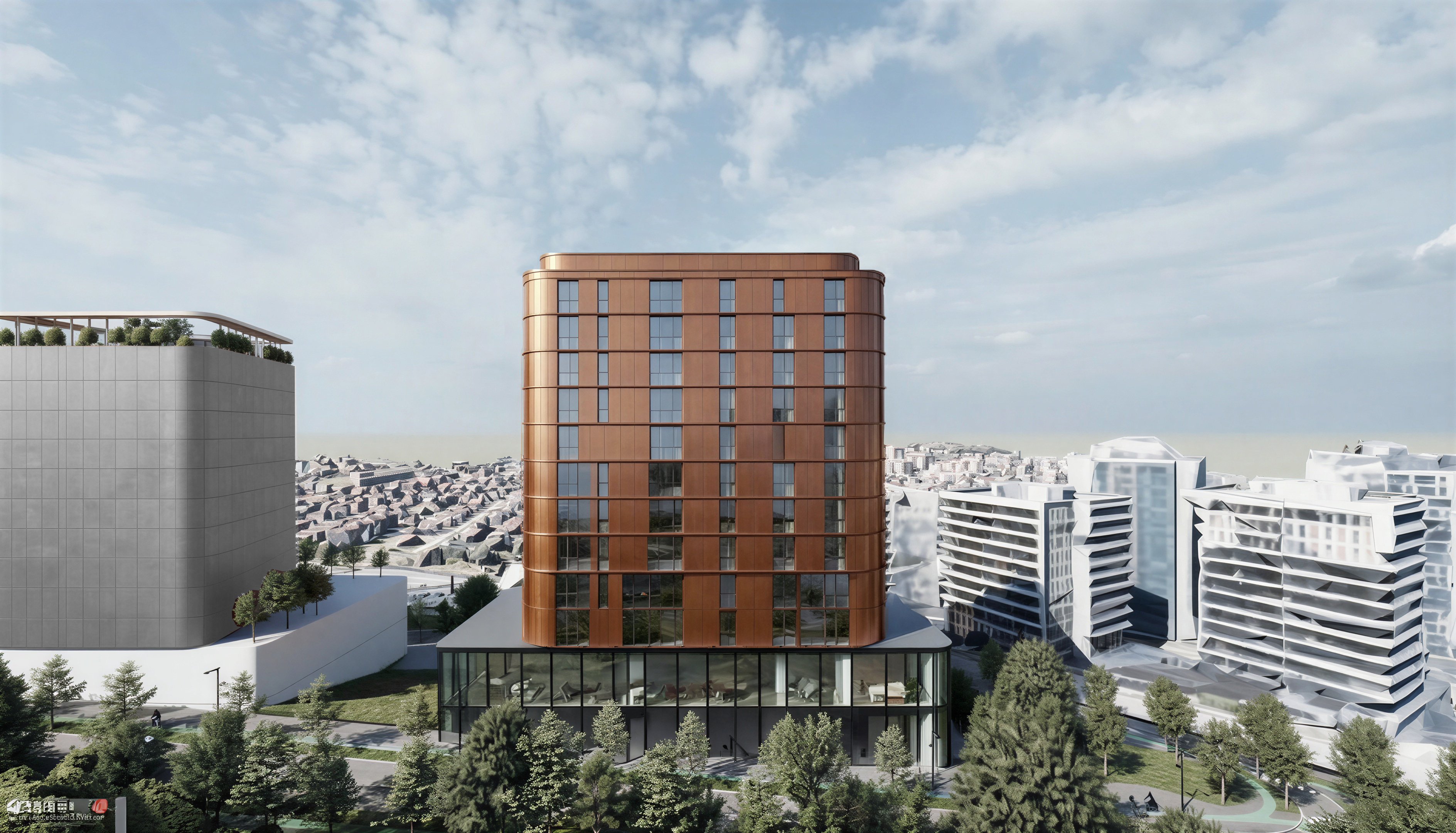important preserve the existing geometry and the existing context exactly as provided preserve the existing windows do not add new windows do not modify alter reinterpret add remove scale or reshape any geometry do not change the site surroundings street layout neighboring buildings vegetation or context elements do not modify geometry scale proportions buildings road layout sidewalks or surrounding context in any way do not modify text soft noon atmosphere diffused neutral natural daylight with subtle cold tones cinematic architectural mood warm interior lighting 3000k glowing from inside creating strong contrast between cool exterior and warm interior large glass surfaces with realistic reflections soft mirror effect subtle environmental reflections of sky and surroundingsimportant do not add new windows