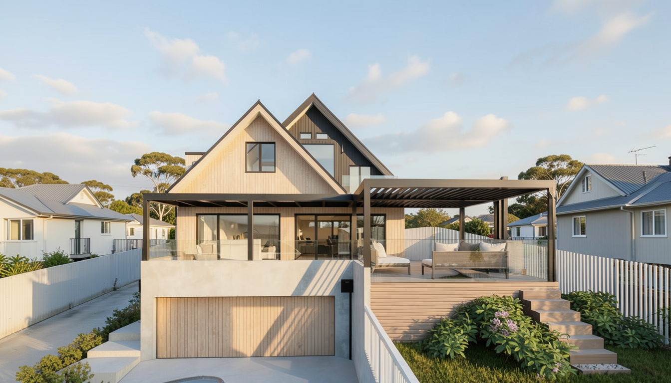 enhance add neighbouring houses new zealand oak black metal and smooth concrete cladding