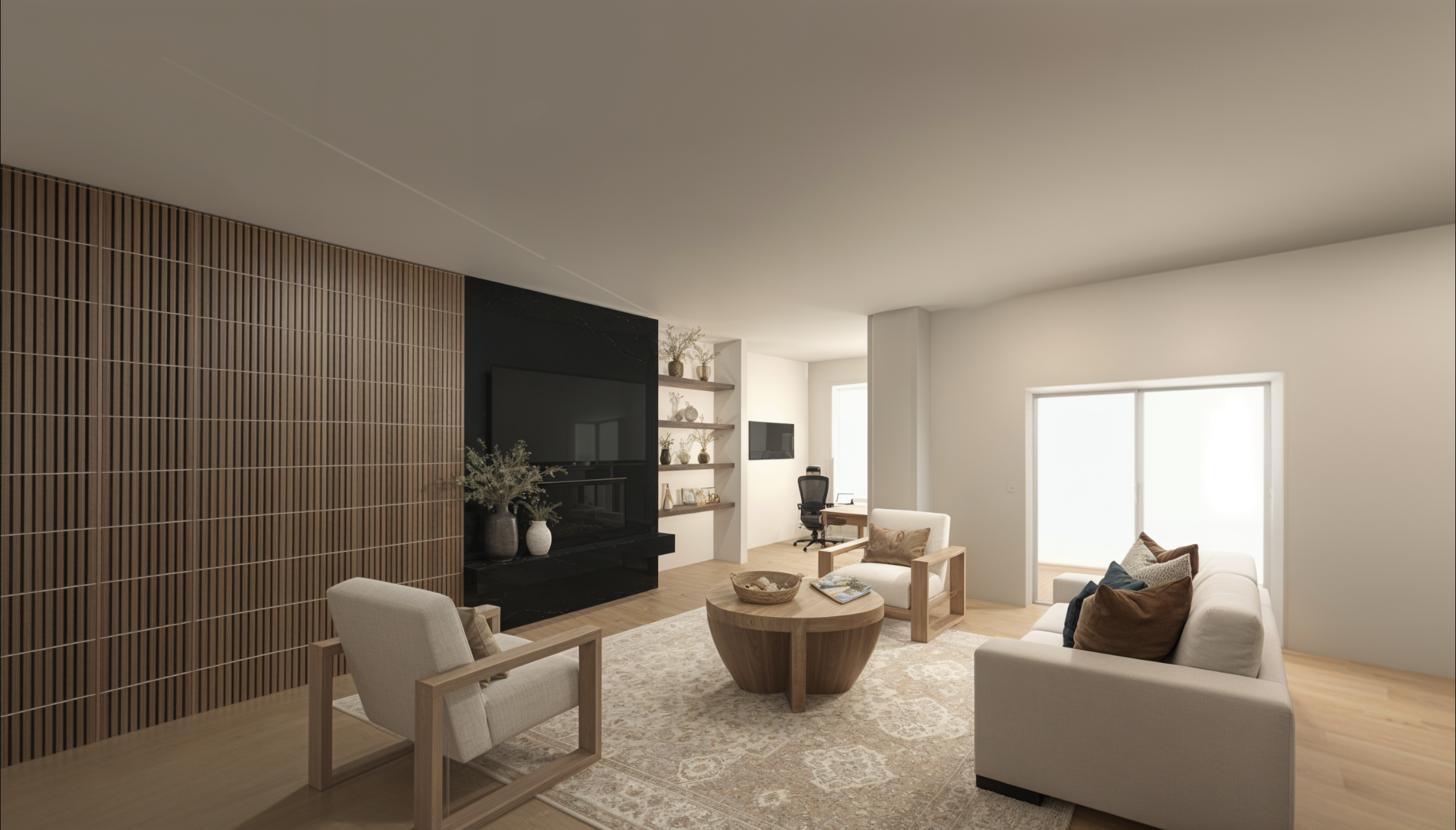 exterior shot add artwork to wall mountains out the windows