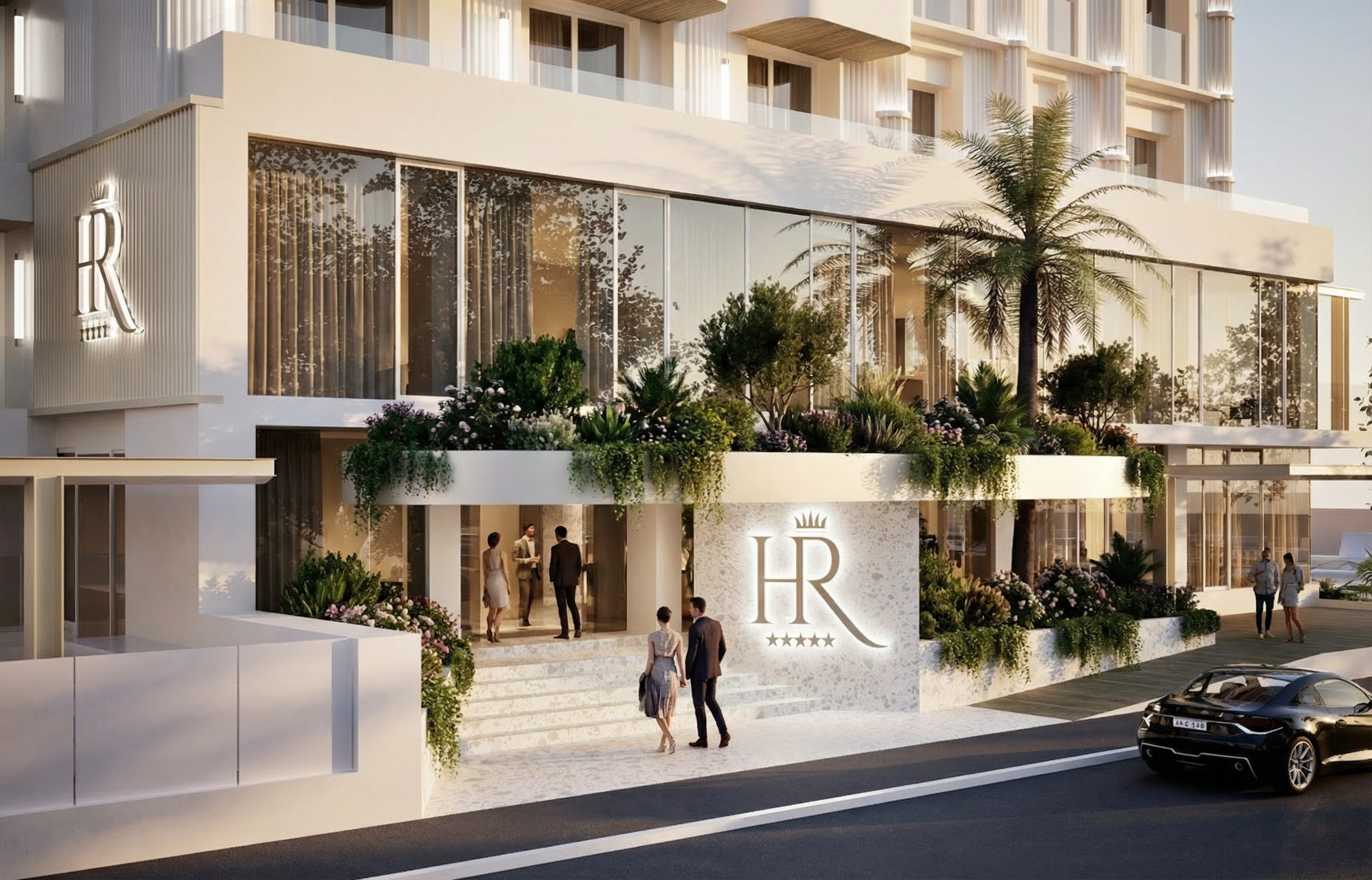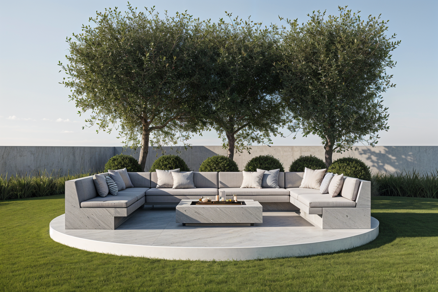 at the top in front of the green house a small white rectangular mobile home with a modest facade with a door and two windows in front of the mobile home a wooden deck promontory without a guardrail resting on a small secure embankment with stones from the wooden promontory a dirt path descends the slope winding left and right in tight curves between each bend in the path there is mediterranean shrub vegetation with strawberry trees rosemary lavender and heather along the path the same type of vegetation and some scattered cork oaks and pines further down the slope there is a clearing a refuge flanked by lush mediterranean vegetation and woodland in the center of the clearing a stone fireplace around it people sit on wooden or stone elements meditating to the right the path is paved with pvc grid and inert material along the edge of this path gentle earth mounds allow more vegetation to be planted isolating this path from the meditation area