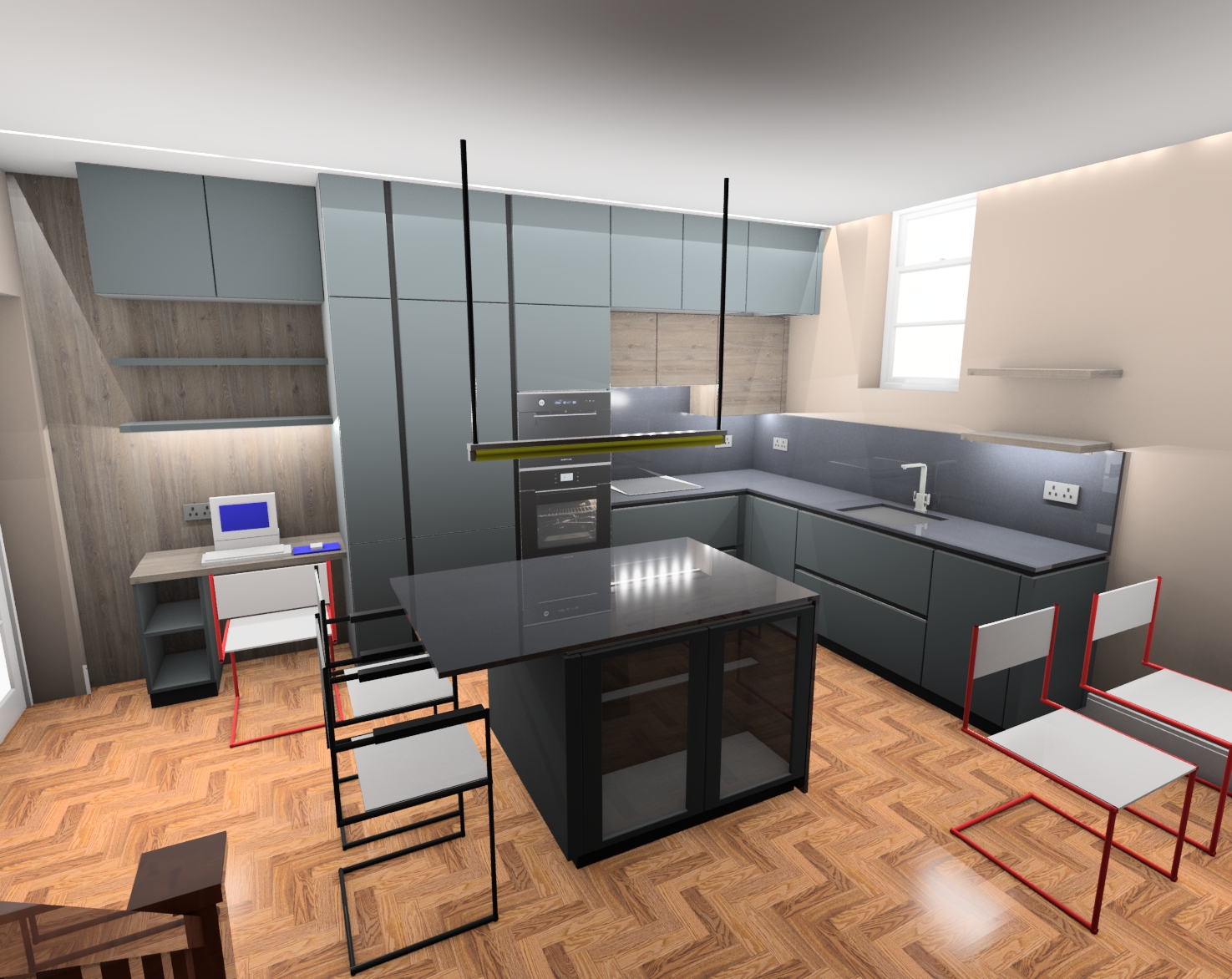 make room moody replace pc with laptop low daylight but enchance mood lighting enchance colours replace furtniture with modern furniture