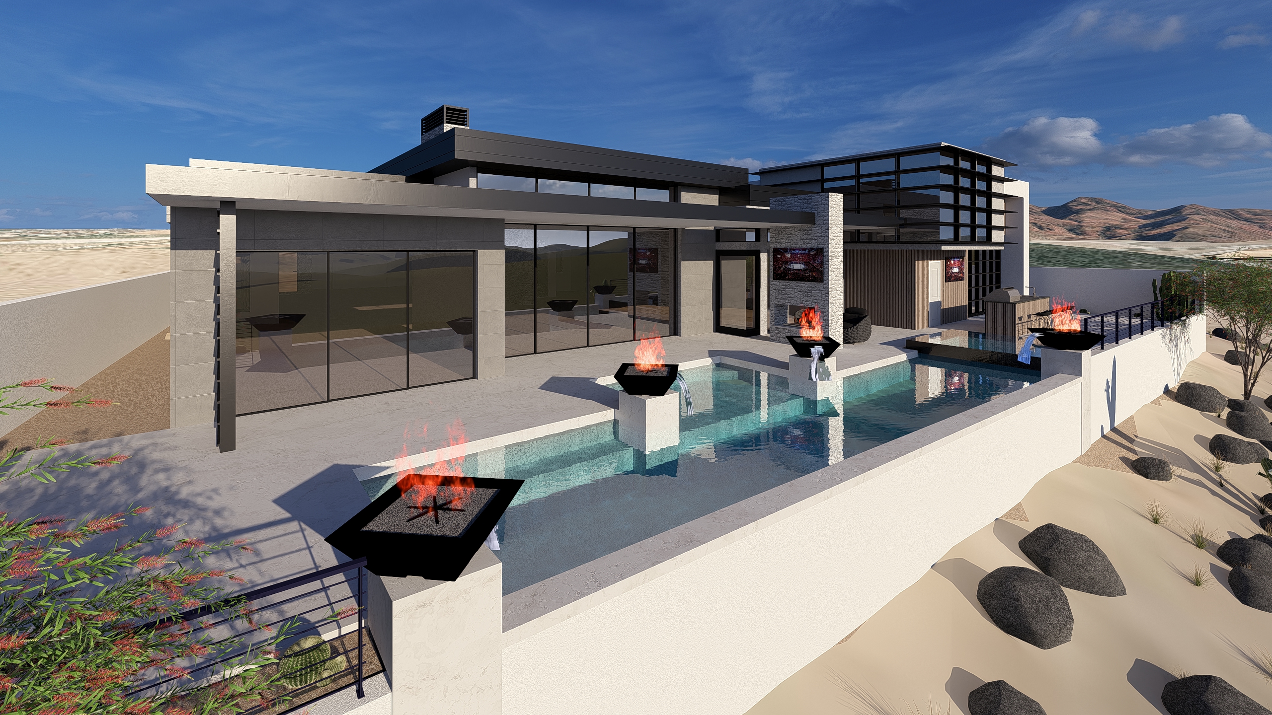 exterior shot make the background desert look native to arizona in havasu maintain colors make glass look more reflective