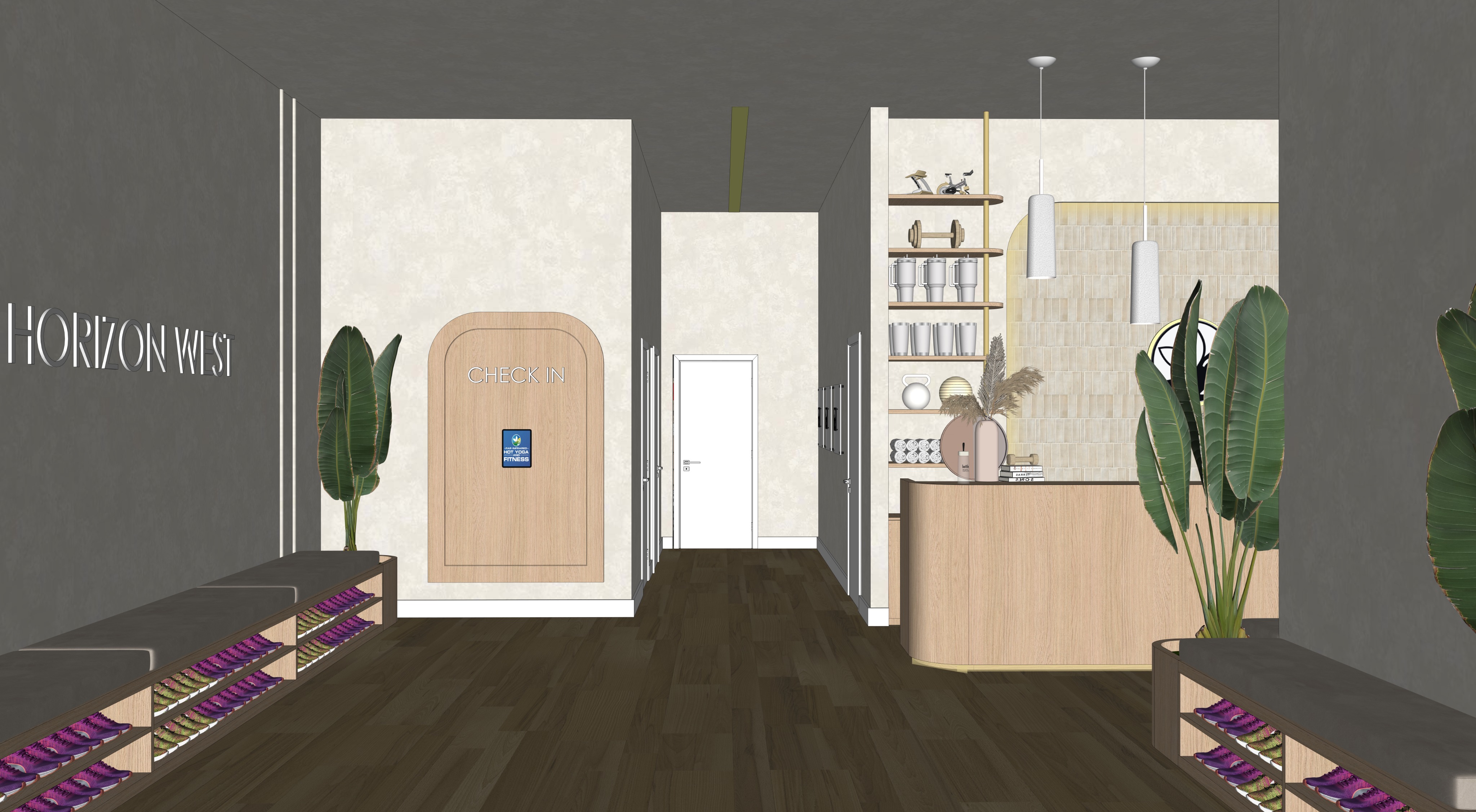 there is led lighting underneath the counter turn on the corridor lights do not change anything else in the image