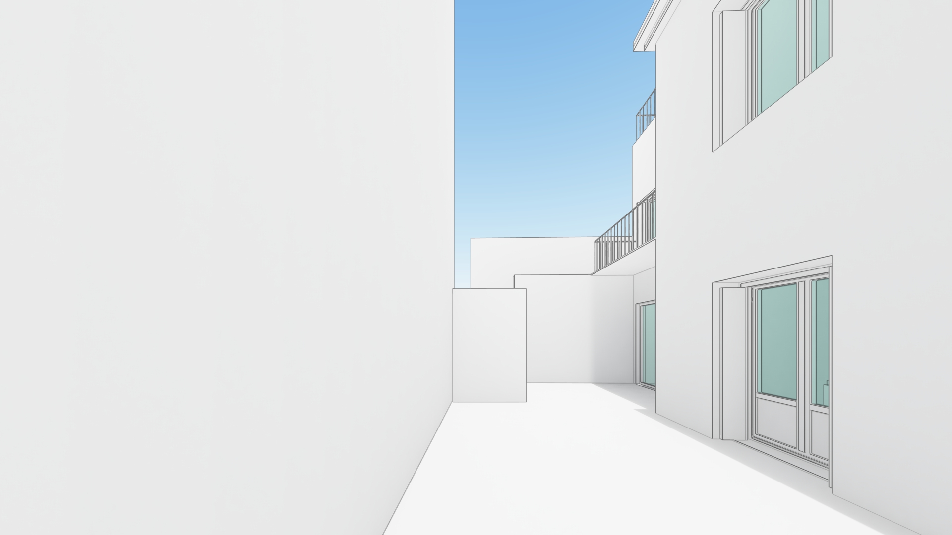 make the photo more realistic add a garden and yoga space in the rear of the photo green and people
