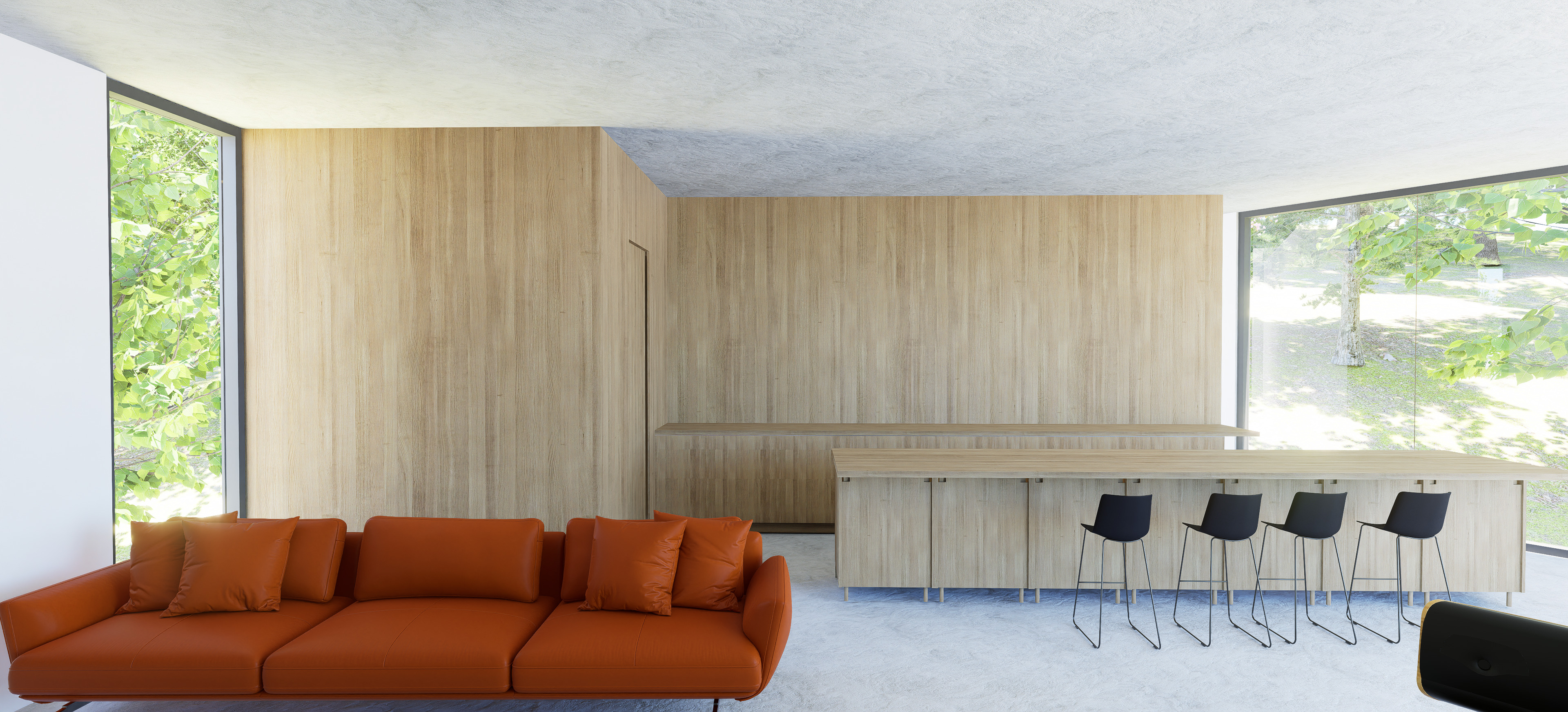 sleek minimal kitchen appliances soft indirect lighting dusk