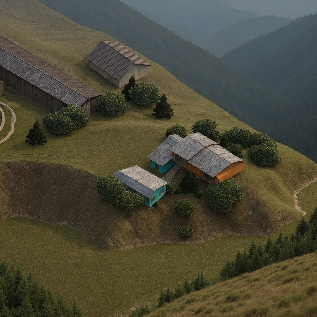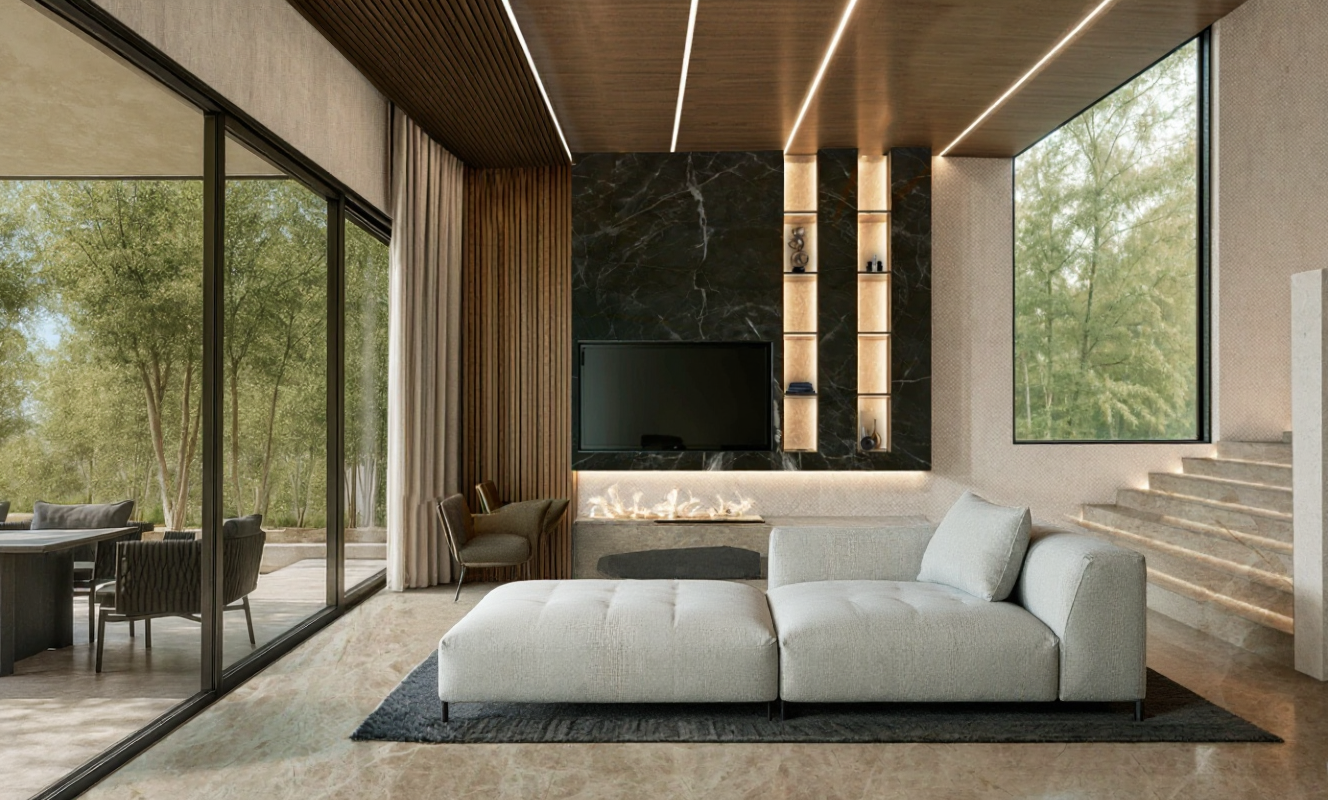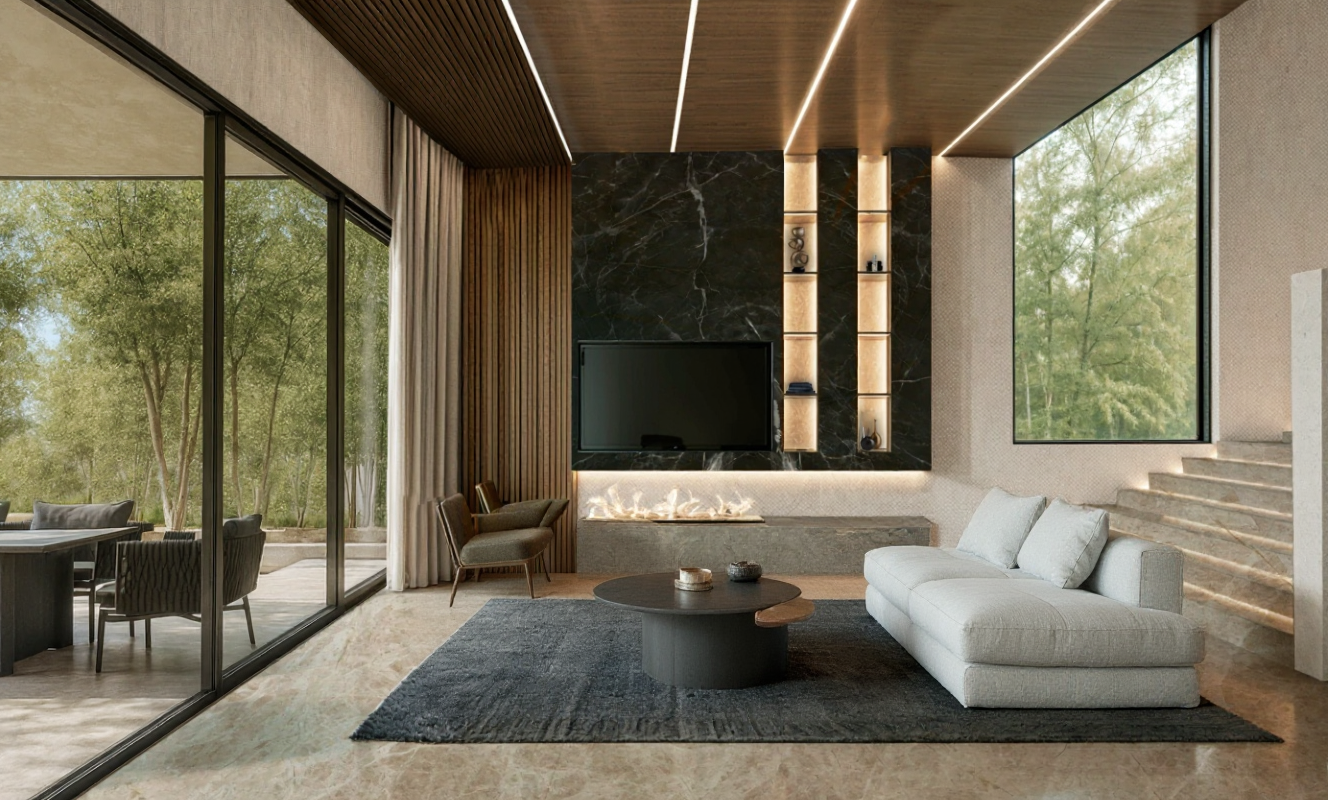 modernist exterior shot add lawn areas and background vegetation and trees architecture