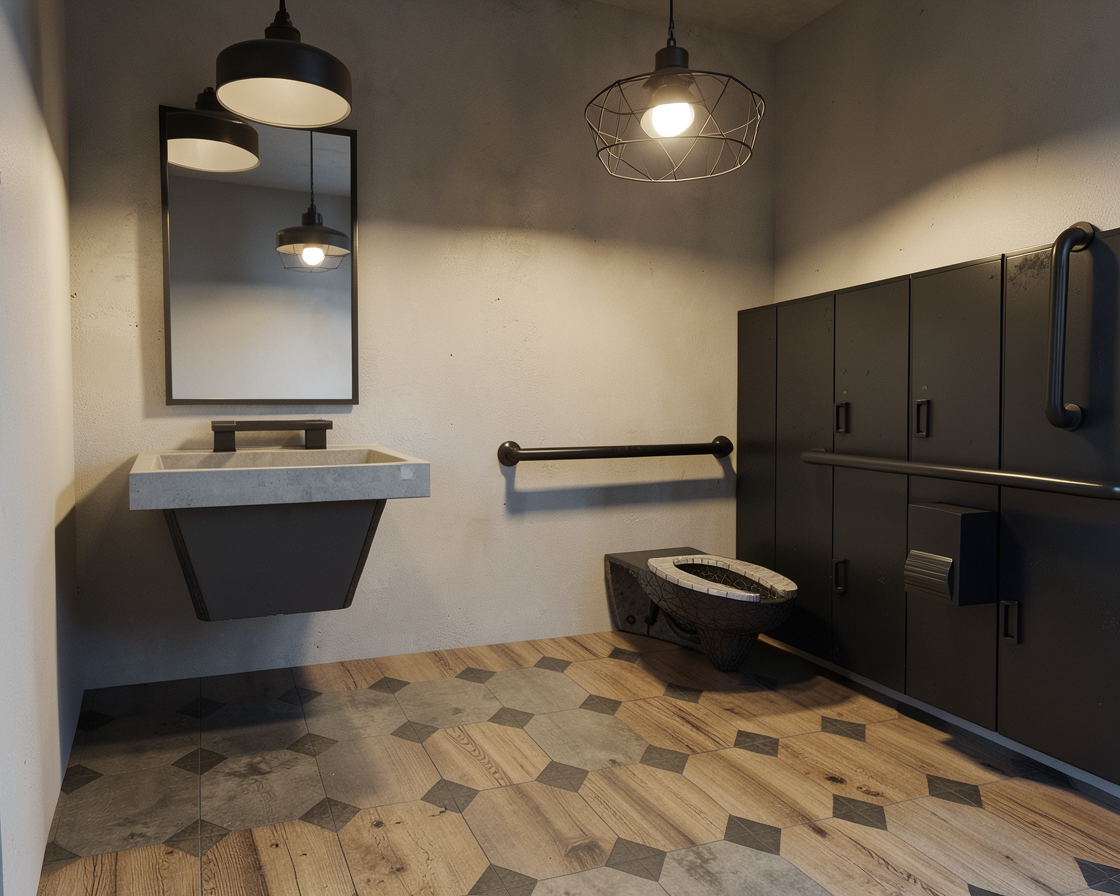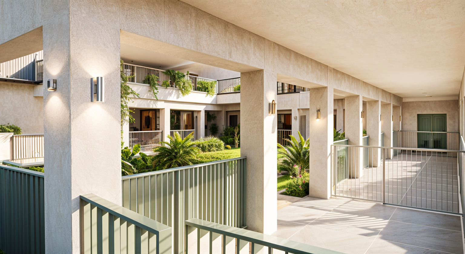 create an adobe style enganced version of this structure with drought resistant lanscaping real roof tile detail and smoothe stucco texture add exterior light sconces on each side of the windows and sliding doors and create a modern organic feel to the image maintain the exact dimensions and layout from the original image darker stucco color almost charcoal