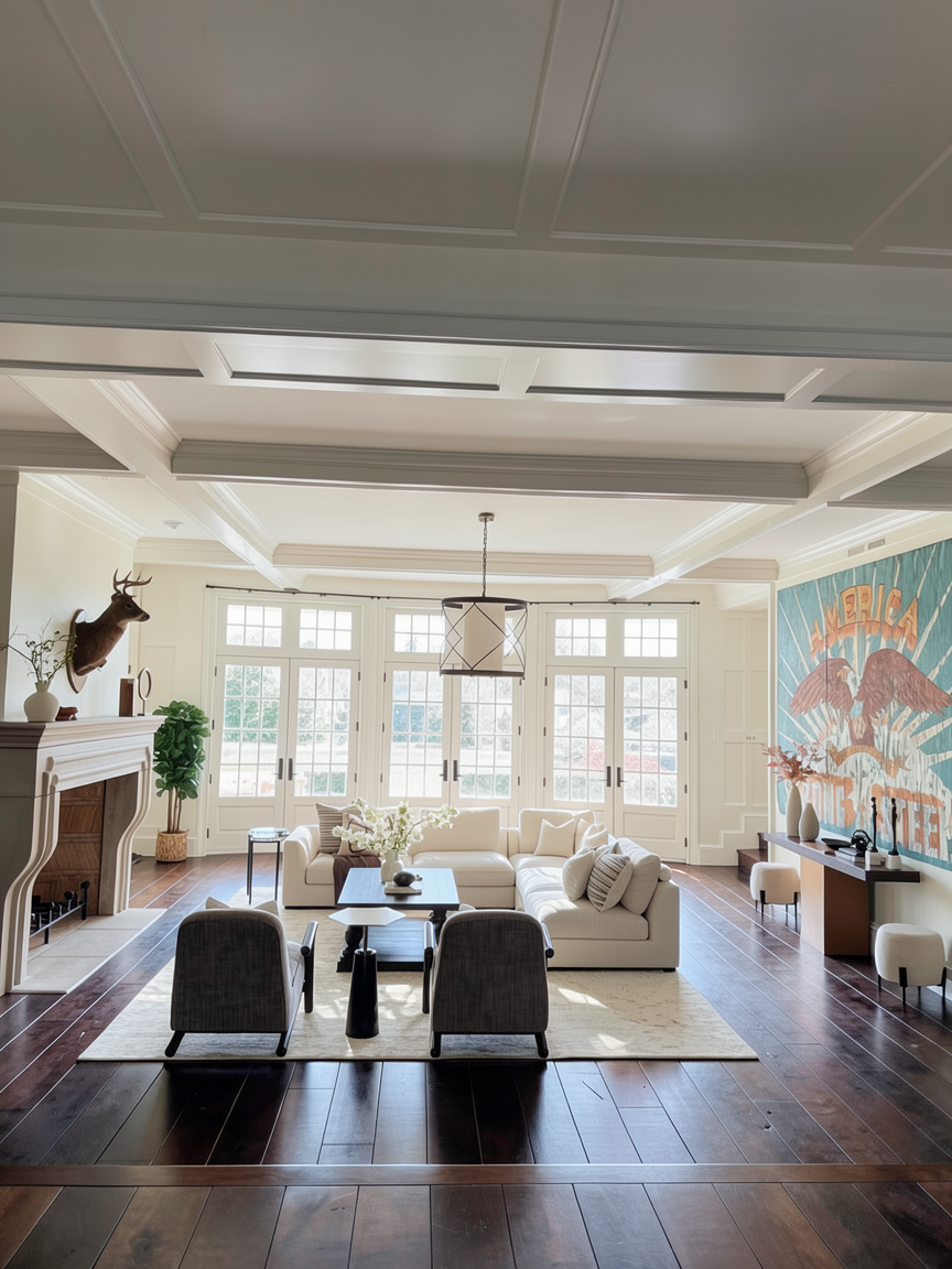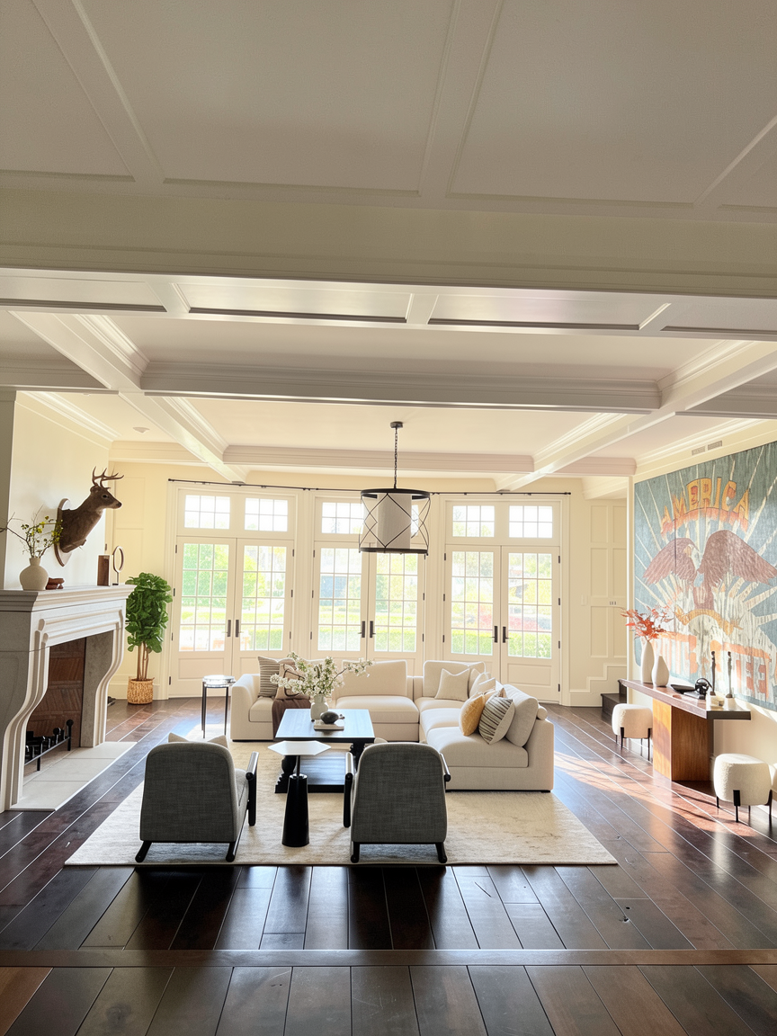 square living room with windows only on one wall