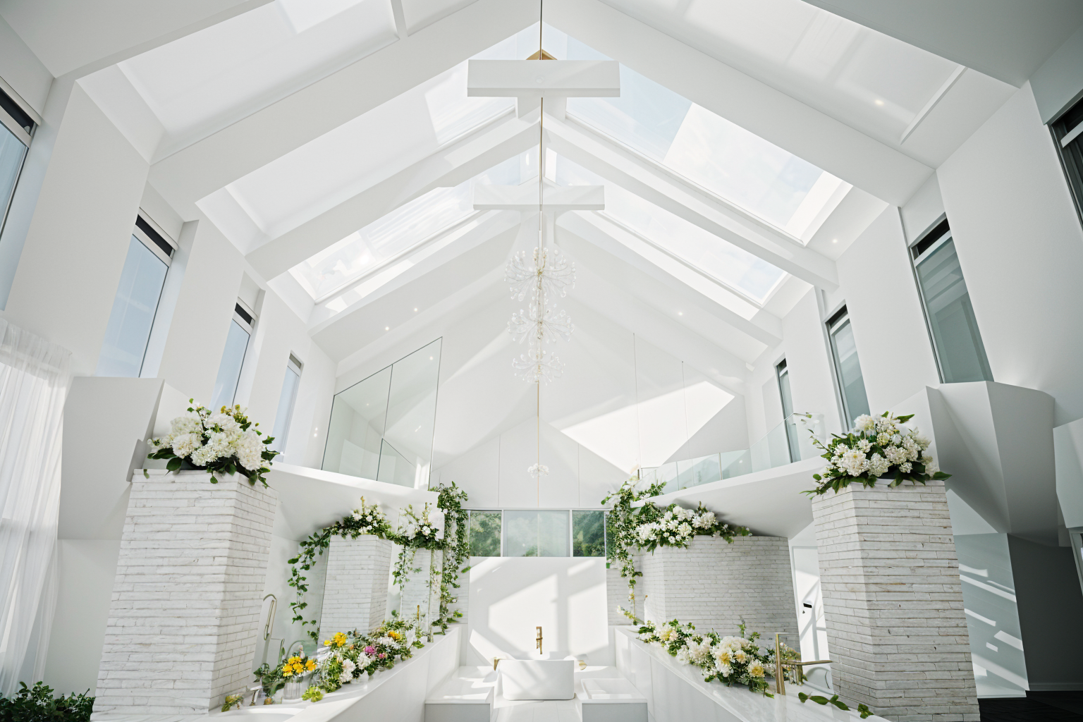modernist interior shot a high resolution interior rendering of a modern open concept single story home with light wood flooring throughout the space includes a cozy living room with a large l shaped dark sectional sofa a small coffee table and a tv on the wall the kitchen features green lower cabinets stainless steel appliances a stove double sink and an island or small dining table with chairs adjacent to the kitchen is a wood dining table with modern chairs the bathroom includes a freestanding bathtub toilet and a vanity with dual sinks and bright green accents the bedrooms are minimal each with a bed side tables and a dresser featuring soft lighting and green yellow accent pillows at the rear a covered outdoor area with a wooden pergola is visible through large sliding doors showing an outdoor dining table setup use natural lighting warm color tones and modern but cozy furniture styles add indoor plants for a touch of greenery and realism architecture