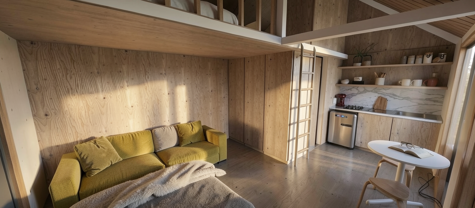 do not modifu anything at the desihgh just put better texture keeping the material as they are on the model see the wood from the window put light inside the cabin above the coich make the interior comfortable