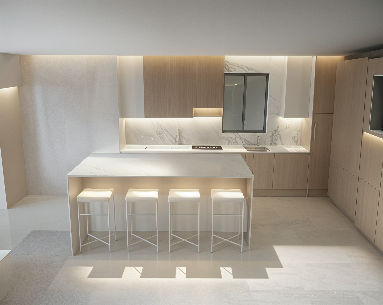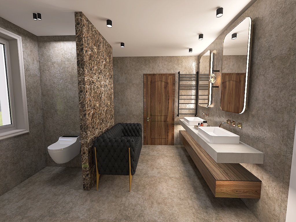 modern close up shot keep everything the same only change the floor and wall tiles to more blur and dark architecture