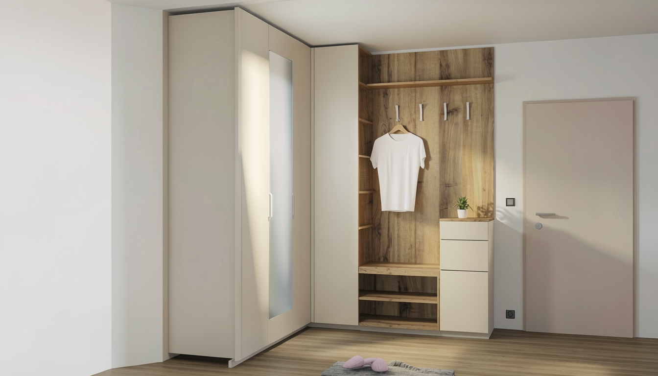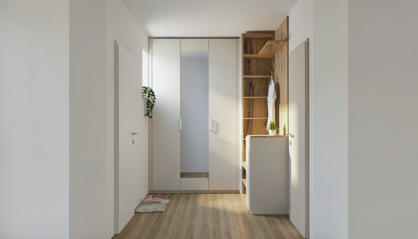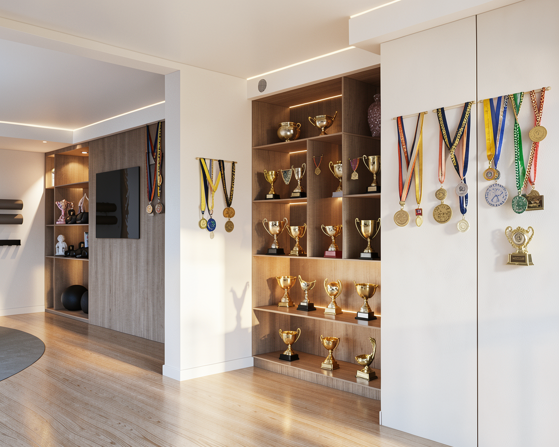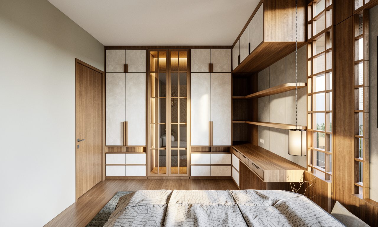 soft white modern kitchen kitchen realistic render high detailed add kitchen accesories black frame of the glass cabinets glass inner shelves mirror on the end of glass cabinets tan brown granite