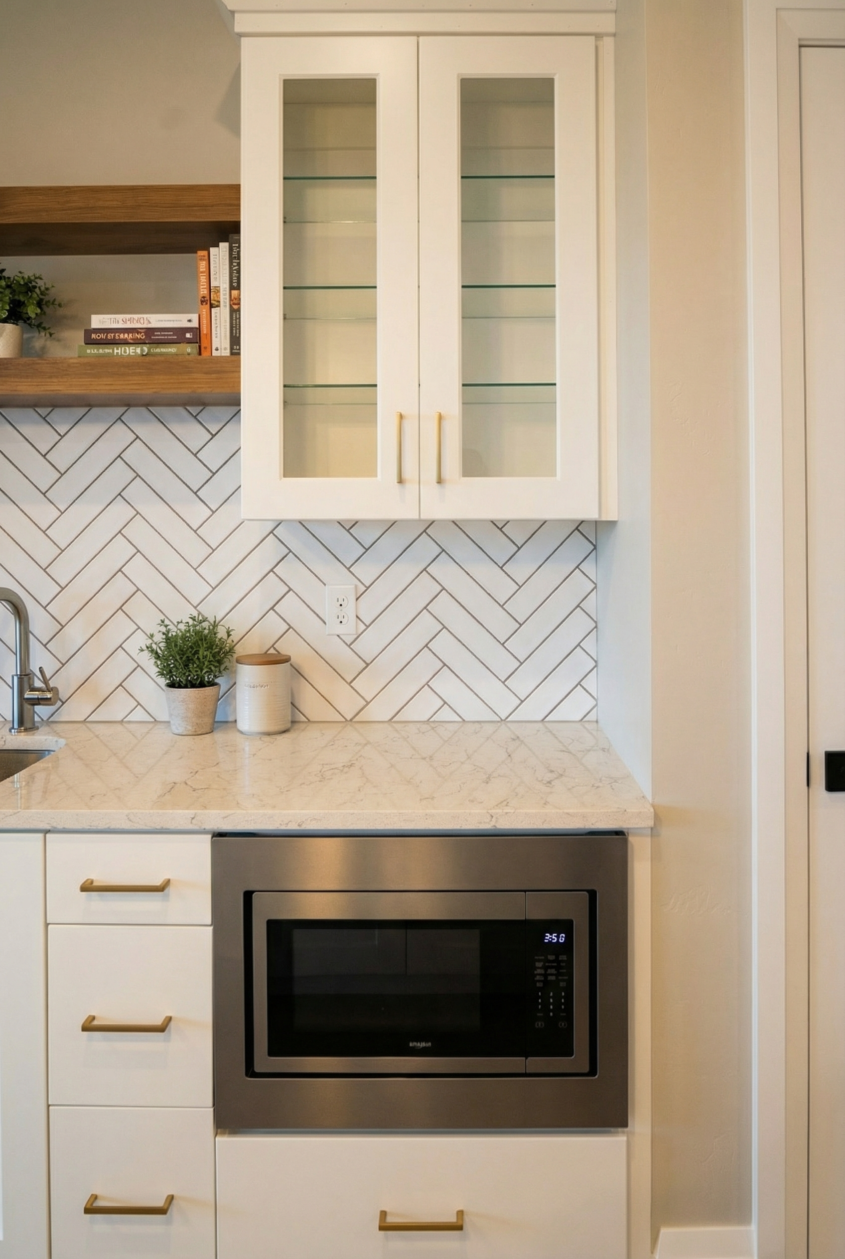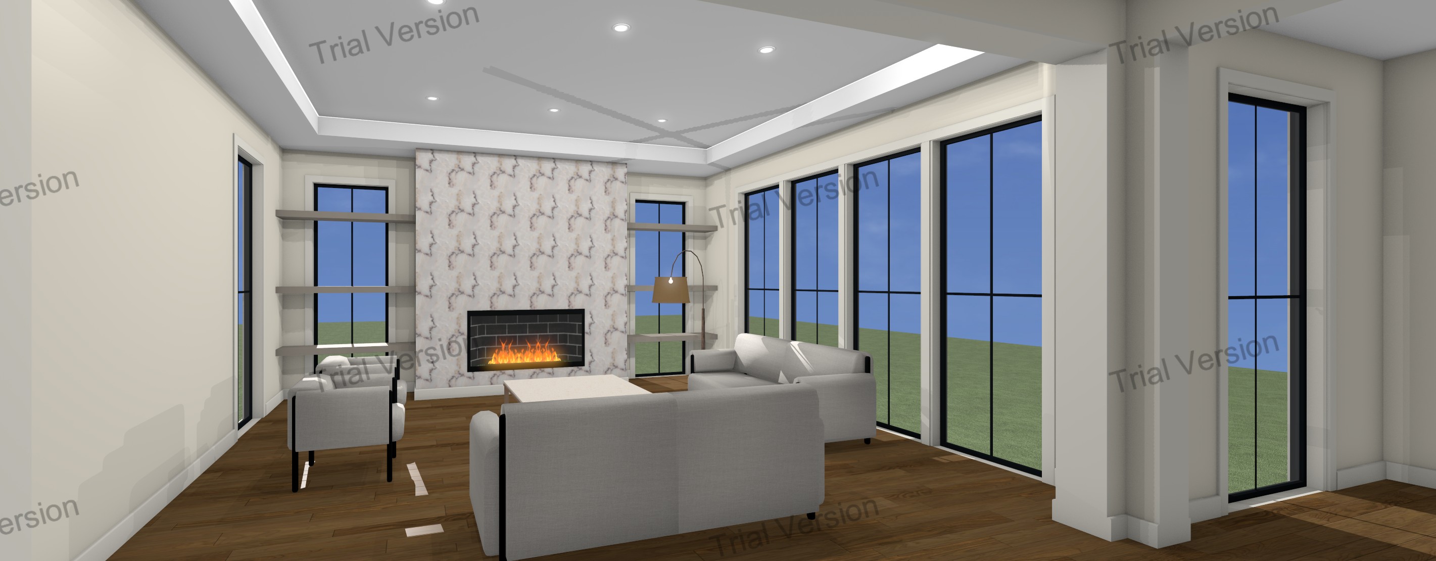 photorealistic luxury living room interior warm modern organic style natural stone fireplace wall with subtle color variation and realistic texture soft matte limestone hearth built in wood shelving with natural oak grain and slight imperfections styled with neutral ceramic vases and books large black framed windows flooding the space with soft natural daylight late morning lighting with gentle shadows and realistic light bounce warm interior accent lighting from fireplace and table lamp light neutral fabric sofas with soft texture and natural folds layered textiles and area rug for depth realistic materials with roughness variation no glossy surfaces subtle imperfections throughout cinematic composition balanced contrast high dynamic range ultra realistic interior photography professional architectural lighting 35mm lens shallow depth of field natural color grading