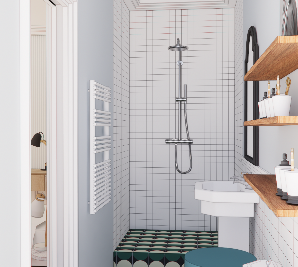 add a glass door at the shower