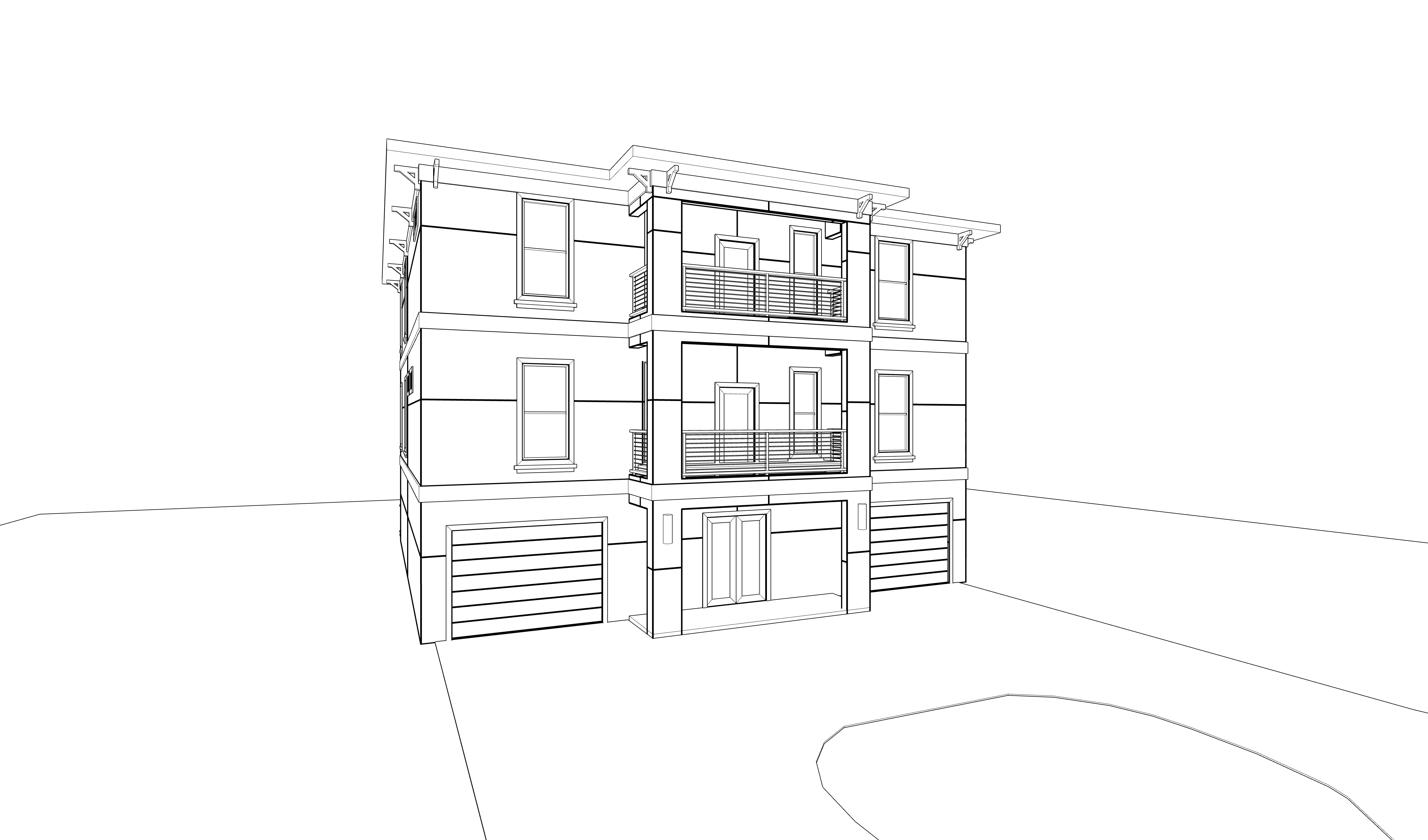 contemporary exterior shot render a modern three story house with a sophisticated design use a soft cream color for the walls to reflect elegance and warmth the window frames and railings should be a sleek matte black for a contemporary contrast the roof should have neutral gray tiles add lush green grass on the ground to enhance the freshness of the scene set the atmosphere in the golden hour just before sunset casting a warm soft glow over the entire structure architecture