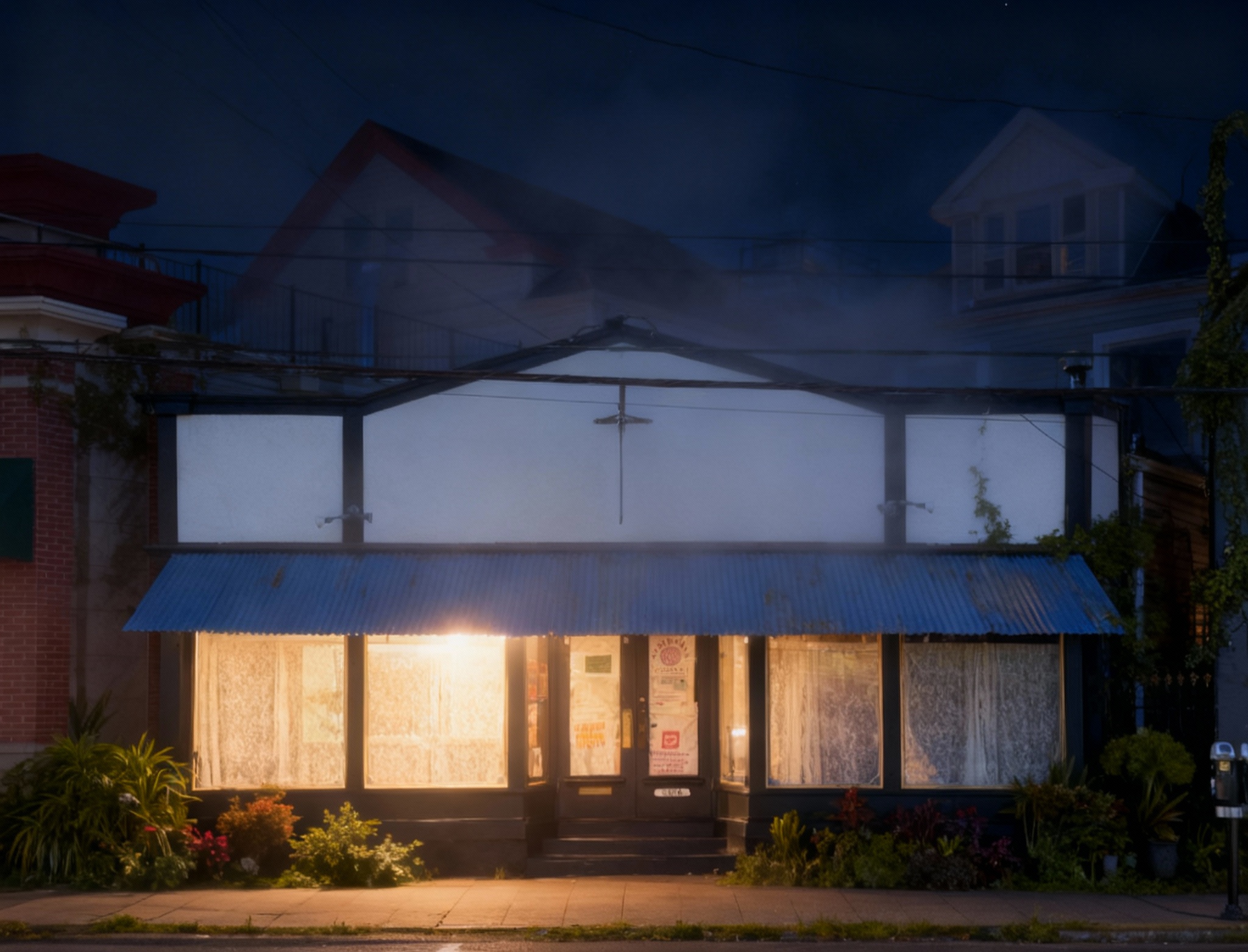 make the lights brighter inside the house add a dramatic sky it is daytime