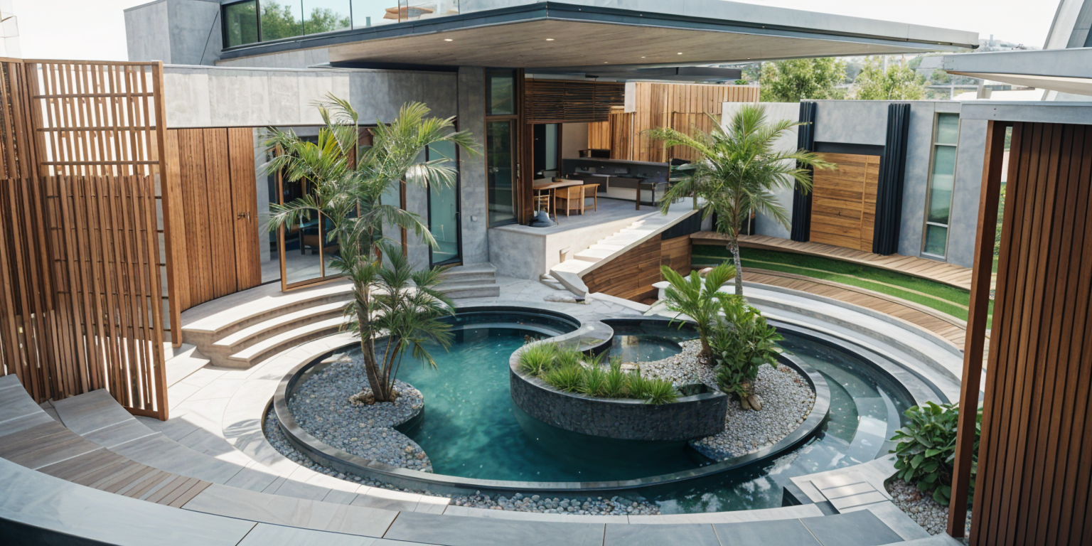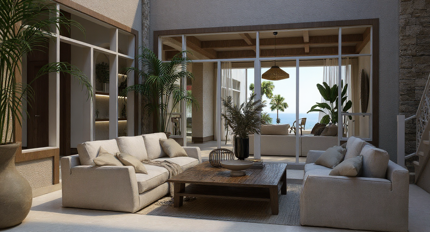 modernist perspective shot use abundant nature coziness and greenery set in the evening with soft gentle sunlight architecture