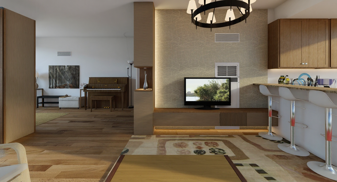 go back to the source photo color remove the painting apply same cabinet wall color in the rendering
