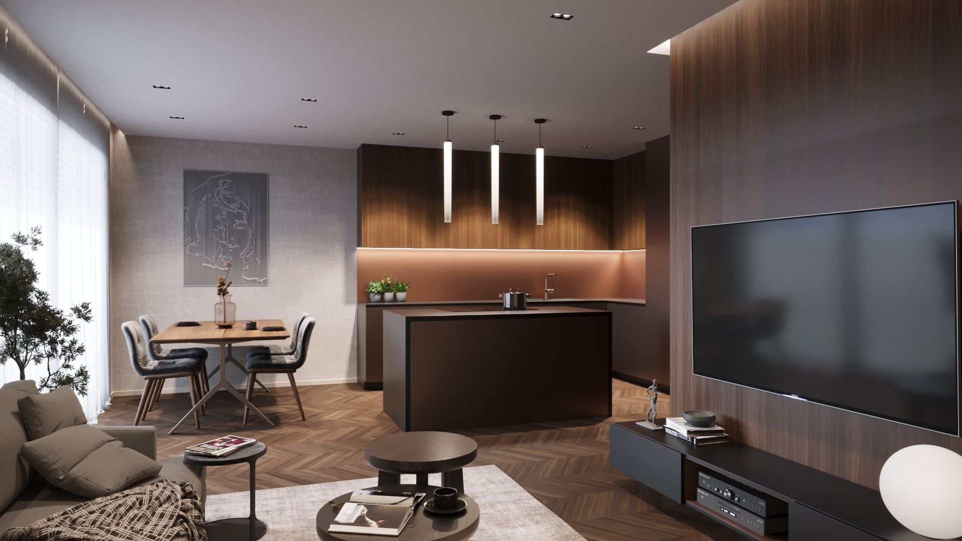 realistic architectural photography of interior room maintain original furniture placement and geometry bright daylight vivid colors realistic light bounce sharp focus ray traced reflections on surfaces ultra detailed textures clean and airy atmosphere