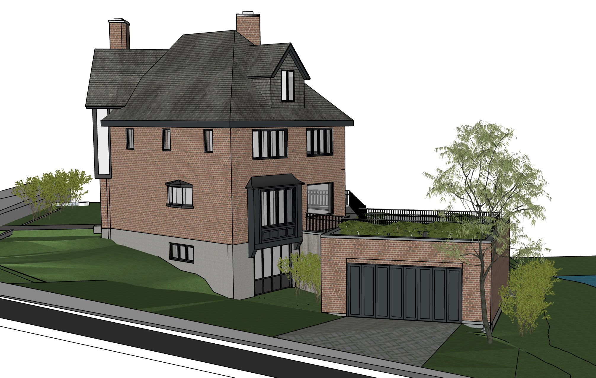 produce architectural sketch rendering with added landscaping elements